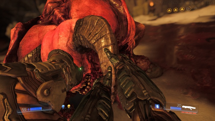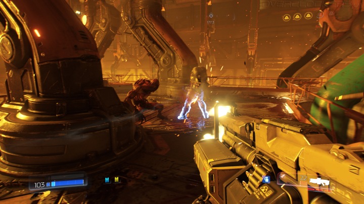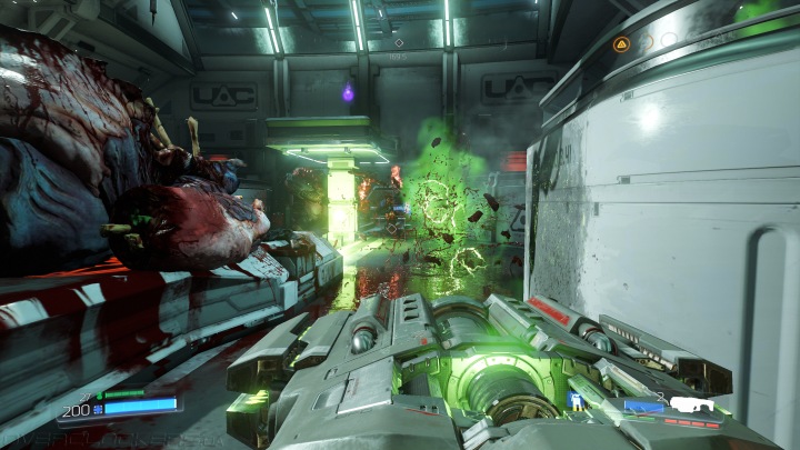 Также помогает использование элементов окружения. Часто вокруг разбросаны взрывающиеся бочки, которые могут облегчить труд по зачистке территории от монстров. Но самые яркие впечатления дает легендарная пушка BFG, которая мощным энергетическим выстрелом разрывает все живое впереди себя на ошметки, устраивая кровавые фейерверки.