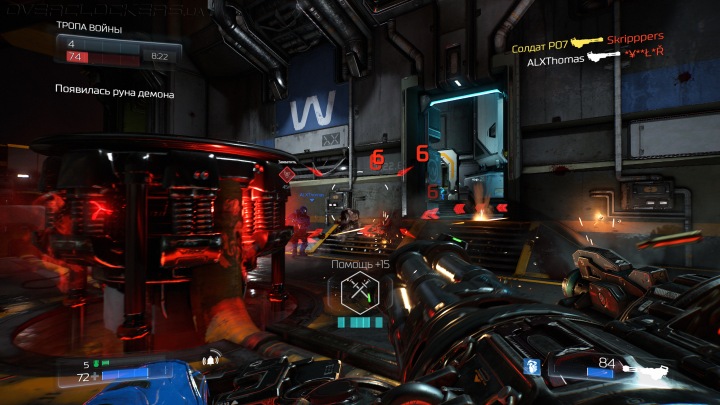 Дополняет это шутерное шоу мультиплеер, который оставляет более неоднозначные впечатления. По аналогии с кампанией каждый уровень является пересечением множества проходов, провоцируя ближние схватки и давая возможность для маневров. Используется знакомый арсенал, а карты выполнены строго с соблюдением визуальной стилистики. Бои скоротечны и динамичны, особенности каждого оружия ощущаются еще острее, есть возможность поиграть демоном.