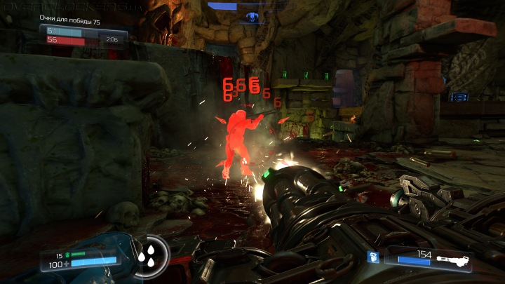 Важную роль в игровом процессе играют добивания. Раненный оглушенный монстр, подсвеченный ярким светом, позволяет разделаться с собой особо жестокими рукопашными приемами. Достаточно подловить момент и нажать одну кнопку, а уж герой сам выполнит нужный удар в зависимости от положения жертвы. Вы будете сносить головы, и разрывать пасть, отрывать руки и давить сапогом адские морды. И все это под хруст и кровавые фонтаны на весь экран.