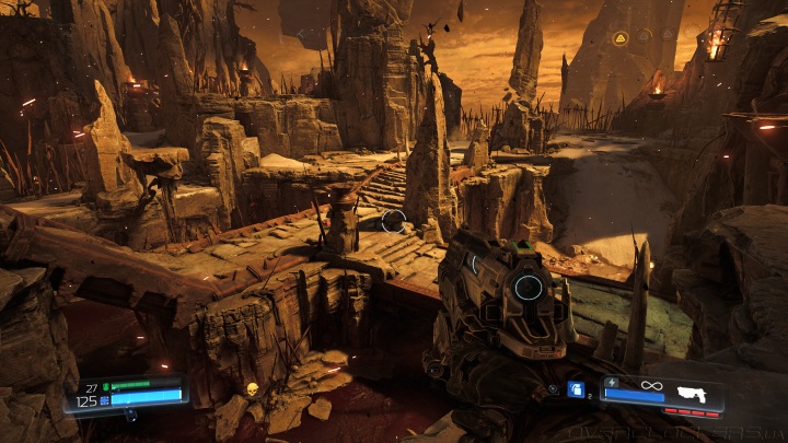 С точки зрения игровой механики дизайн уровней отличный. Каждая схватка разворачивается в рамках определенной искусственной арены. Действовать приходиться в разных плоскостях, прыгая вниз или взбираясь на более высокие позиции. Внезапно находятся какие-то неожиданные боковые ответвления. При этом монстры возрождаются в неожиданных местах и ведут себя крайне напористо, сами стимулируя к активности на арене. Вы постоянно в движении, постоянно прыгаете и вертитесь, пытаясь всадить меткий заряд из своего оружия.
