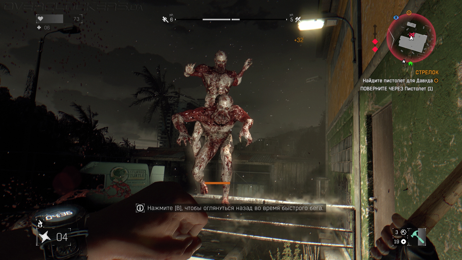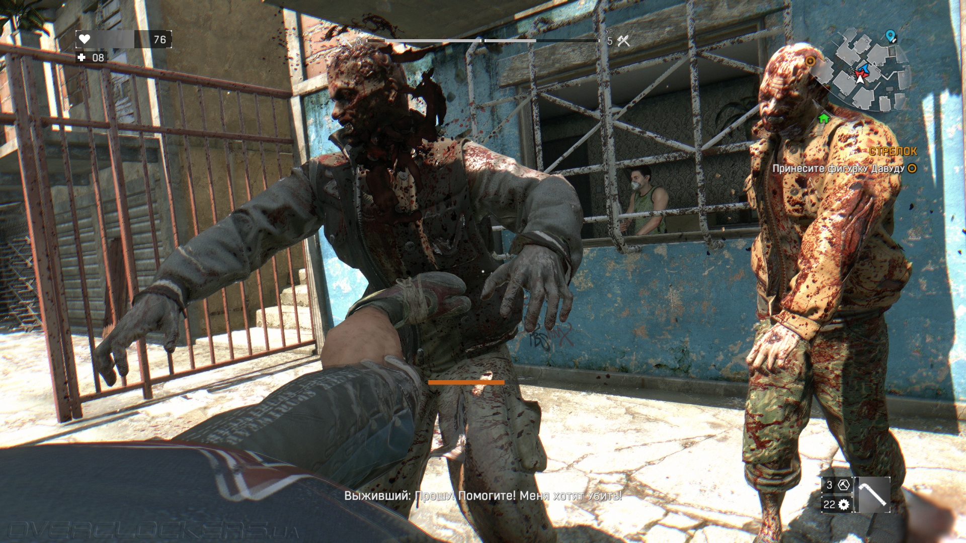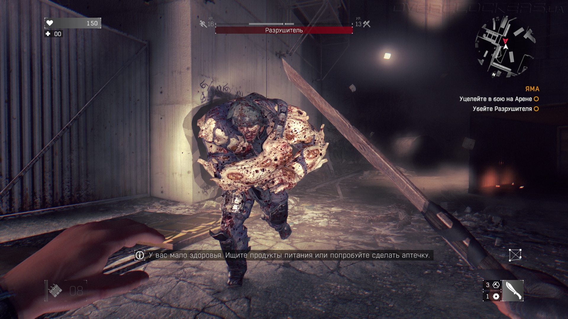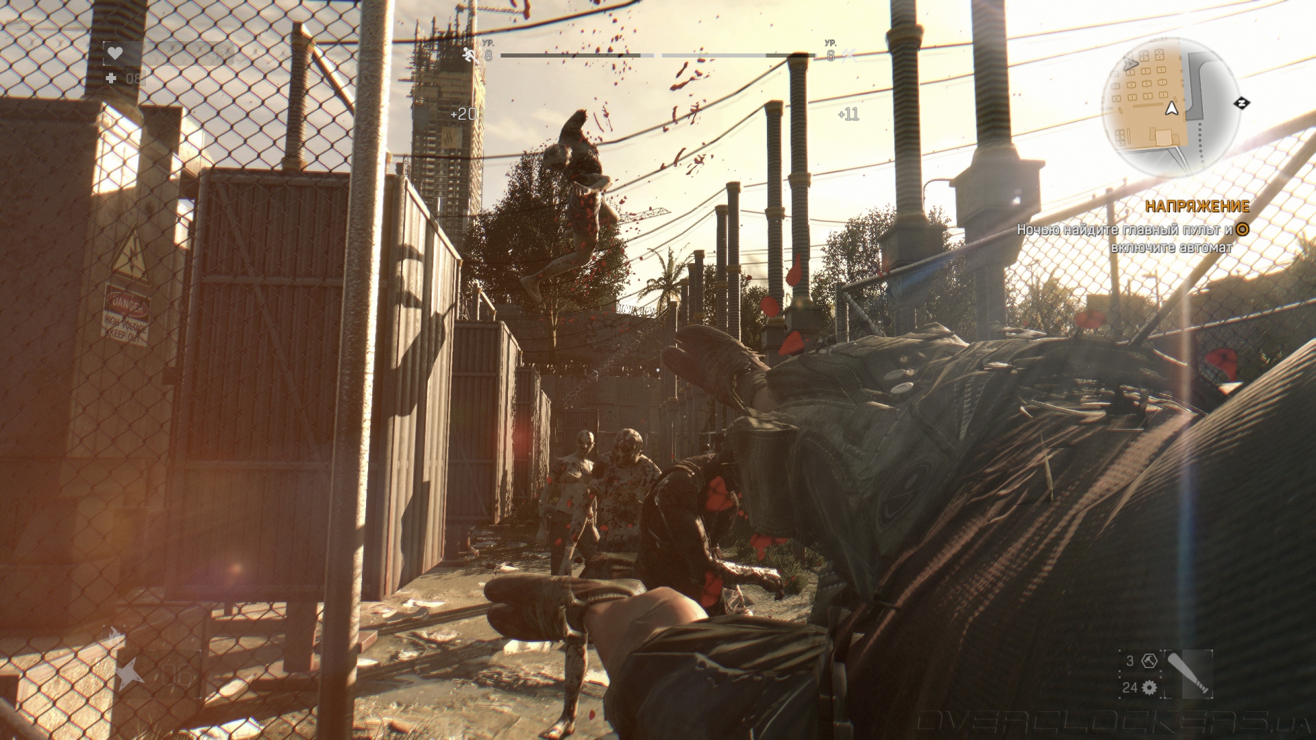 Боевая система напоминает Dead Island, но играется бодрее. Мутузить зомби можно различными дубинами, кусками трубы, ножами и прочим холодным оружием, а можно и дубасить ногой. Есть подкат на бегу и удар в прыжке, который позволяет оттолкнуть врага. Если повезет, то таким толчком можно скинуть мертвяка с крыши или насадить на какие-то шипы (подобных заграждений в игре хватает). Оружие по-прежнему подвержено износу, но служит дольше. Теперь вопрос замены дубин или ножей возникает не из-за того, что они быстро рассыпаются в прах, а потому, что попадается что-то более мощное и интересное. Ну и любое оружие можно несколько раз отремонтировать, что тоже избавляет от излишней горячки постоянно поиска чего-то нового.
