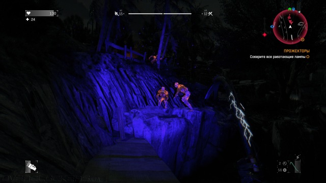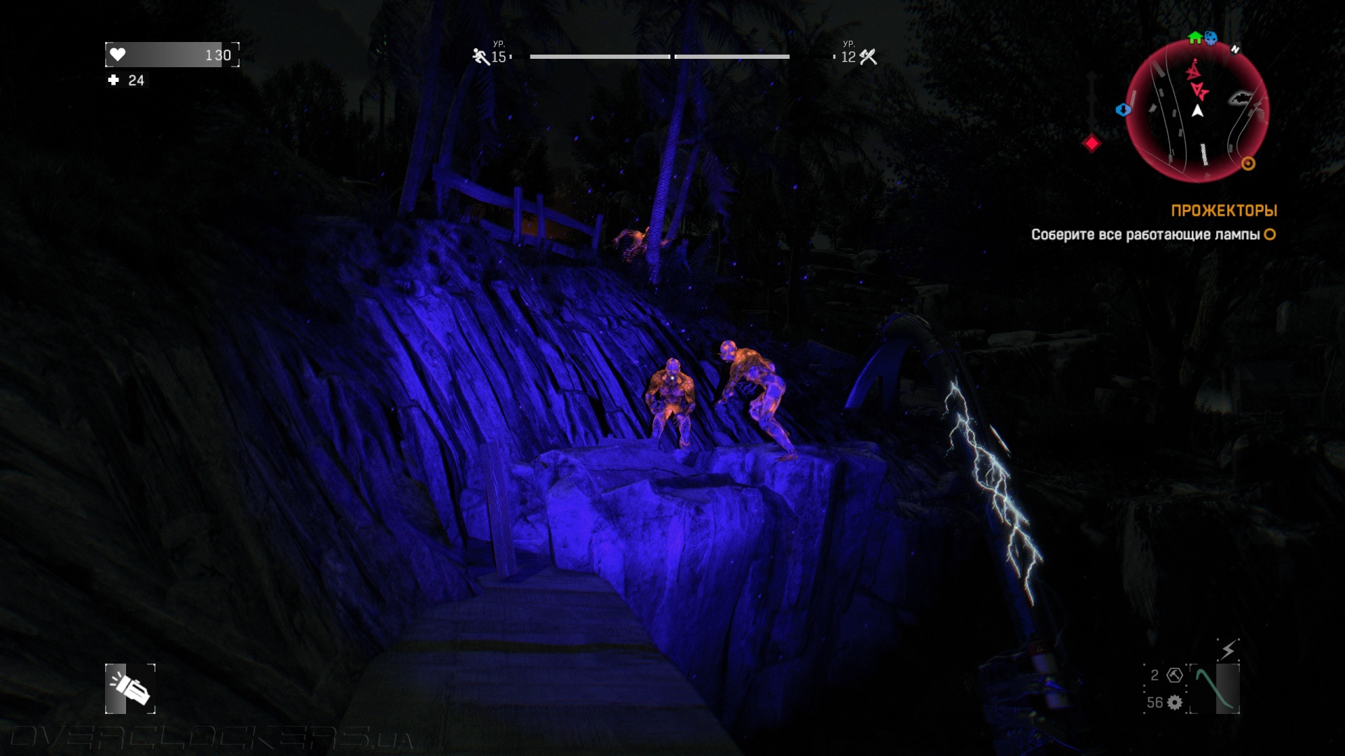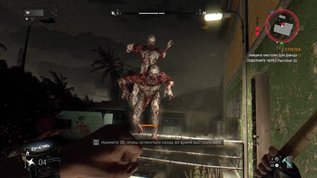 С наступлением ночи становится сложнее. На охоту выходят «прыгуны», которые могут в один миг разорвать случайного путника. Приходится вести себя скрытно и не попадаться им на глаза. На обычном режиме сложности выживать помогают маркеры «прыгунов» на мини-карте. Но даже с ними в кромешной тьме нелегко ориентироваться на местности. Если же вы попали в поле зрения монстра, лучше всего кинуться наутек через какую-то хитрую застройку, не забывая оглядываться назад и останавливать преследователей лучом ультрафиолетового фонаря. Можно и в бой пойти, эти зомби смертны. Но из-за того, что своими криками они быстро собирают целую стаю, шансы уцелеть невелики.