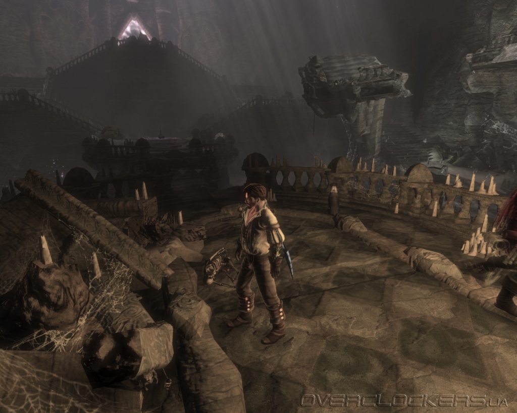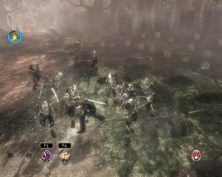 Главным минусом игры является визуальное исполнение, ведь от сказочного мира Альбиона ожидаешь буйства ярких красок, но вместо этого на экране часто приходится наблюдать серую невзрачную картинку. И ведь чувствуется, что кое-какой потенциал у старого движка еще есть. Иногда глаз радуют красивые пейзажи с буйной растительностью, вода, которая искрится в лучах яркого солнца и отражает все вокруг. Да и дальность прорисовки уровней довольно большая. Но однотипные серые текстуры и замыливание изображения портят впечатления. Попытка спрятать лесенки за пост-эффектами приводит лишь к тому, что картинка теряет четкость. Поэтому лучше не выкручивать соответствующий параметр в настройках на максимум.