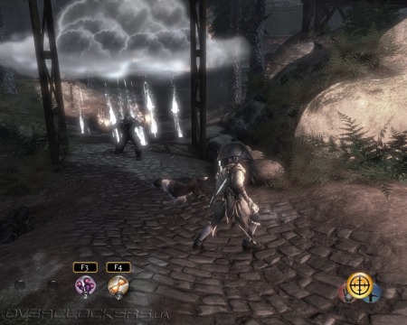 Слишком много бессмысленных боев. Разбойники на дорогах периодически респаунятся, разная живность тоже не брезгует пробовать нас на зуб. Сложность таких случайных противников возрастает по мере прохождения игры, но не постоянно, а в несколько этапов. Поначалу будут надоедать одни лишь волки, потом появятся разбойники, потом еще и оборотни. И ради какого-нибудь шуточного задания можно убить кучу времени, отбиваясь от орд противников, бродящих у дорог. Немного спасает ситуацию телепорт: выбрав на карте нужную локацию, мы перемещаемся в крайнюю точку на ней, а там уж продолжаем свой путь пешком.