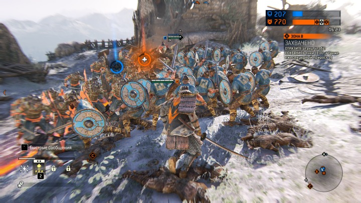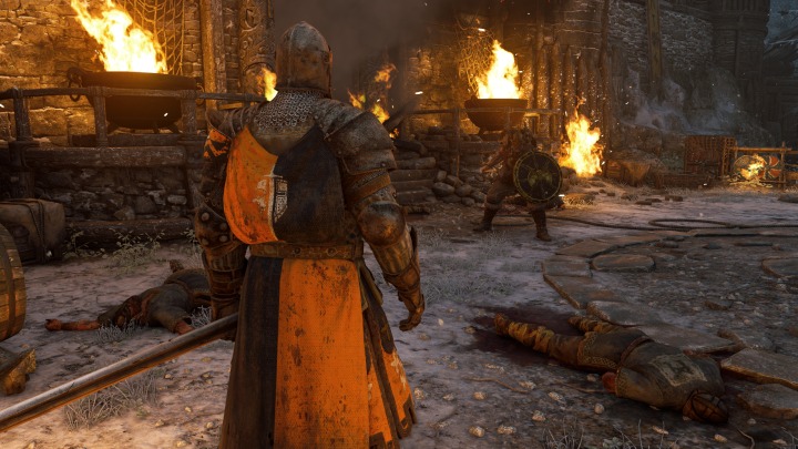 Но даже самый массовый режим предлагает сражение 4x4 игрока, а карты не дают свободы для какой-то особой тактики. Противники ввязываются в серию дуэлей друг с другом или стараются нападать группой, поэтапно отбивая точки. Пока одна команда на одной точке, враги на другой, а компьютерные ИИ где-то внизу изображают сражение. Если бы такой режим получил какие-то дополнительные условия или осадные машины, вышло бы бодрее и интереснее. А сами осады можно было еще реализовать и в видео кооперативного PvE-режима, чтобы в компании напарников рубить головы компьютерным болванчикам.