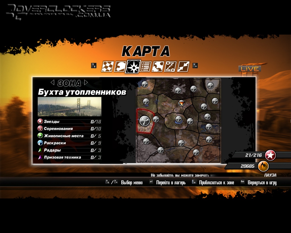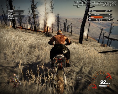 Однообразие — это основная беда игры. При наличии огромного мира, карьера - это даже дело вторичное, ведь должно быть просто приятно поездить по бескрайним безлюдным территориям, если занятие это как-то разнообразить. Но в FUEL единственный стимул таких путешествий — это подбирание разбросанных бонусов-раскрасок для транспортных средств, да кое-где спрятанных бочек с топливом. Все, больше заняться на огромнейших территориях нечем. Есть еще какие-то правда флагштоки в «живописных местах», но что они дают абсолютно не ясно. И это при том, что уровень наполнения локаций объектами вполне радует, ведь тут полно всяких заброшенных домиков в лесу, стоянок и различных трамплинов (прыжки на которых, впрочем, тоже ничего не дают). Может наш водитель на мотоцикле или квадроцикле и какой-нибудь трюк выкинуть, но выходит это без нашего участия, достаточно лишь прыгнуть подальше. Но и эта редкая забава никаких бонусов тоже не приносит. А ведь как было нехитро, но удачно придумано в Pure, когда за трюки давали бонус в виде «нитро», но, к сожалению, ни до чего такого разработчики FUEL не додумались.
