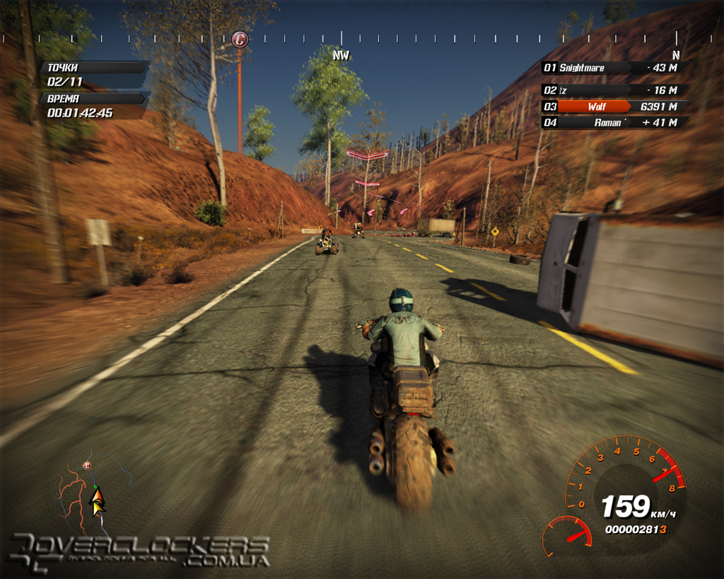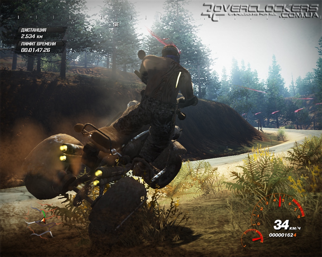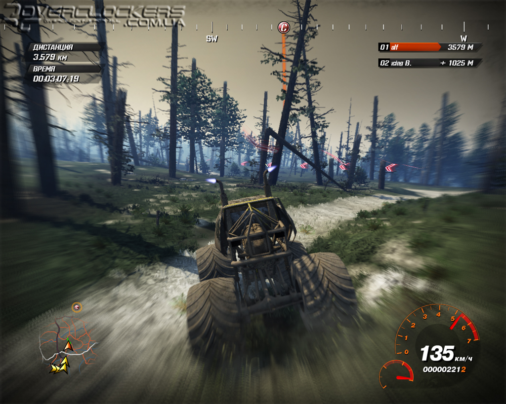 Сами же соревнования почти ничего оригинального не несут. Это или гонки из пункта А в пункт Б, или заезд по контрольным точкам, или привычная гонка на выбывание. Трассы довольно разнообразны, как и предлагаемые транспортные средства. Это могут быть гонки на легких мотоциклах или багги по петляющим грунтовым тропкам среди густого леса и холмистой степи или гонки на более привычных автомобилях по серпантину горных асфальтовых дорог. Главная цель в каждой гонке — проехать через контрольные точки или просто достичь финиша первым. Так что после старта можно не следовать за группой соперников, а ломануть напролом через овраги и буераки. Игра иногда и сама к этому подталкивает, предлагая большое разнообразие развилок. Порою действительно можно значительно срезать путь и доехать до финиша первым, ни разу не встретив противников. Но такой узаконенный «чит» на самом деле можно применить очень редко, что все-таки радует. В свободе передвижения нас ограничивает наше транспортное средство, ведь далеко не каждый автомобиль может скакать по кочкам, и попытка схитрить может закончиться тем, что машину занесет, она застрянет или просто превратится в «черепаху» на грунтовом покрытии. Беда в том, что из локации к локации в этих гонках мало что меняется, кроме самих транспортных средств да маршрута трассы.