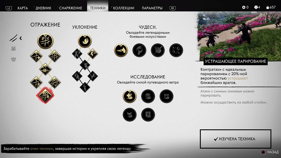 В Ghost of Tsushima есть несколько веток развития, куда стоит вкладывать полученные очки навыков. Они же пригодятся для открытия стоек, а также умений стелса.
