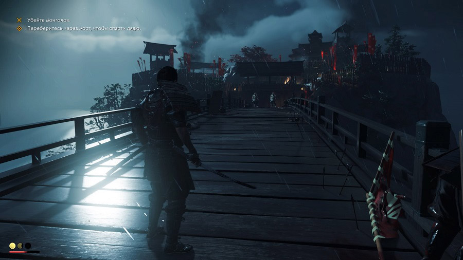 Звук отличный, локализация добротная, голоса подобраны почти идеально, а для большего погружения дают выбрать японскую озвучку с русскими субтитрами. Для фанатов творчества Акиро Куросавы есть даже черно-белый режим в стиле его фильмов. Музыка атмосферная и завораживающая, но отдельно от игры не работает и не просится в плеер.