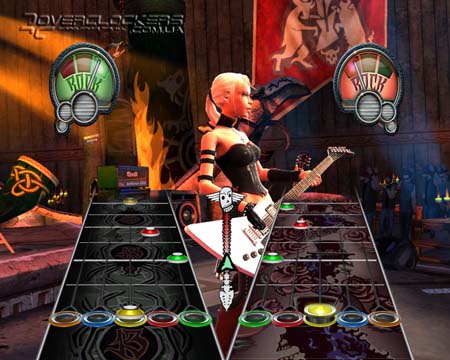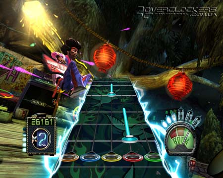 Чем больше нот мы сможем сыграть, тем больше очков заработаем. Есть дополнительные бонусы и комбо, а также несколько уровней сложности. На более простых используются меньше 5 виртуальных ладов. Если вы играете на клавиатуре, то не знаю как насчет гитариста, но пианист из вас получится, потому что вам придется бешено отстукивать пальцами ритм на клавишах. Играть на сложном уровне без гитары нереально, вам банально не будет хватать пальцев для того чтобы вовремя наживать пять клавиш левой рукой (учитывая что рука к этому не привыкла и большой палец не дотягивается). Поэтому лучше выбрать сложность попроще и наслаждаться игрой.
