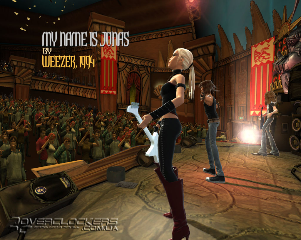 Каждый герой выделывается на сцене по-разному, кто прыгает, кто корчит рожи, кто трясет своей шевелюрой. Но каждый по-своему уникален, и наблюдать за тем как они прикалываются просто забавно. При этом камера ищет удачные ракурсы нас и наших спутников, любит крупные планы во время какого-нибудь длинного соло на гитаре, показывая как пальцы виртуального героя бегают по струнам или как «дает жару» наш вокалист.