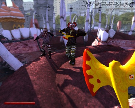 Но, возвращаясь к линии сюжета, надо отметить, что не одним лишь копированием стилистики и боевой системы Condemned примечательна «Черная метка». Приближаясь к финалу, понимаешь, что игра кроме мрачной атмосферы наполнена ещё и черным юмором. Чего стоит, к примеру, фантасмагория, разыгрываемая в парке развлечений, который является логовом клана охотников-клоунов. Парк, выполненный в слегка сумасшедшем антураже, сам по себе смотрится вполне необычно, а когда из подарка-торта выпрыгивает сюрприз с битой, понимаешь, что свои прелести в этой игре все же есть. Клоуны в масках кроме размахивания раскрашенными топорами успевают пританцовывать и дразниться.