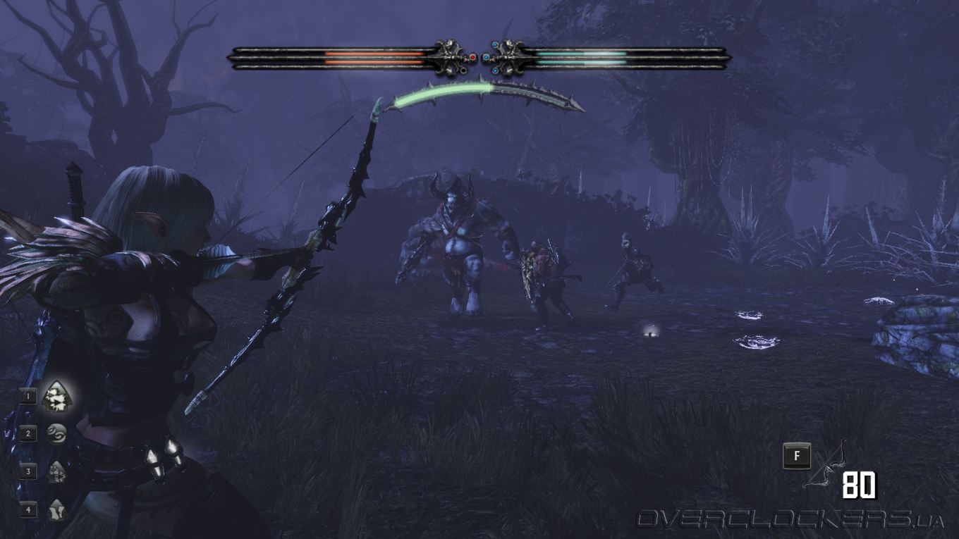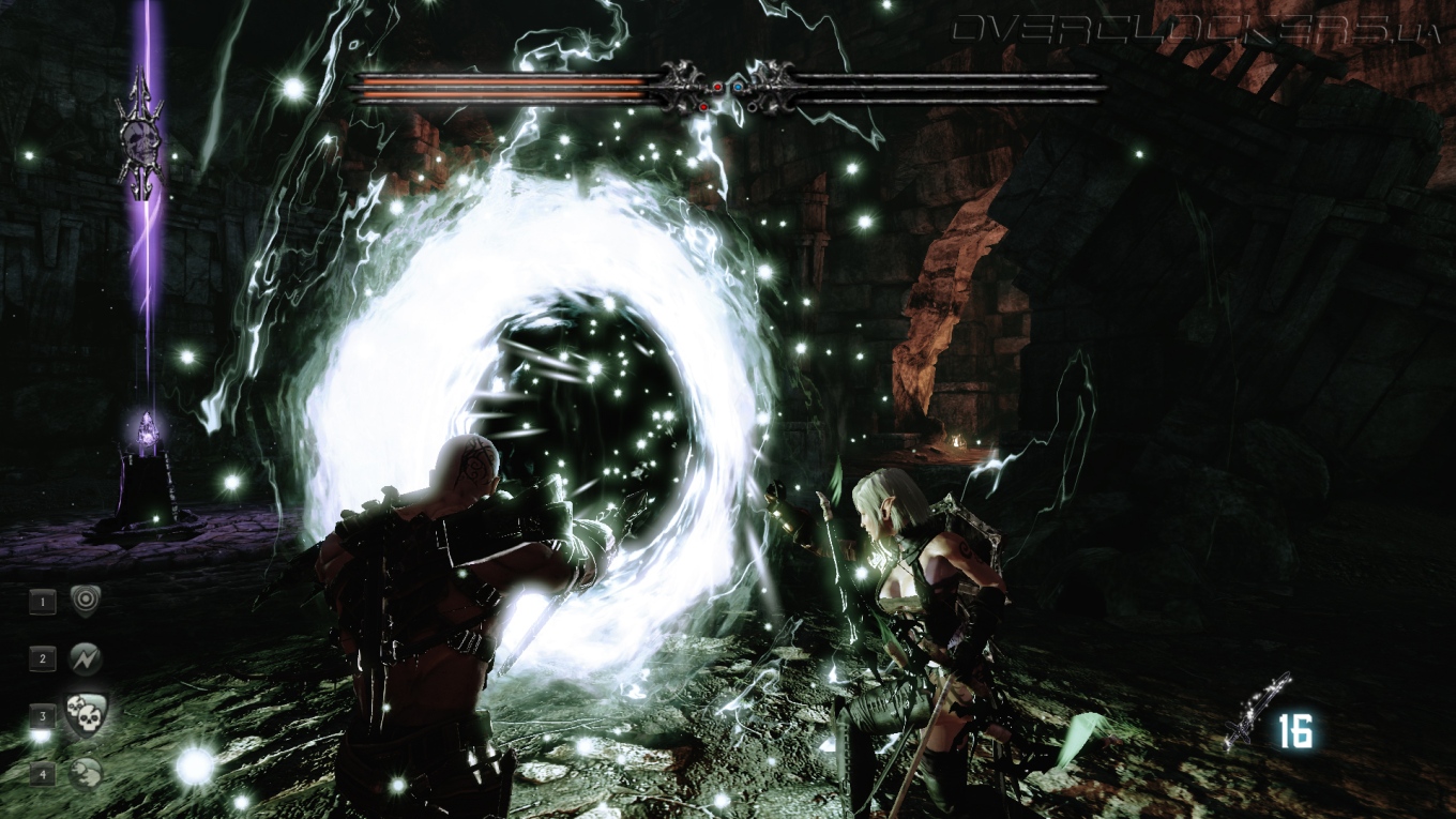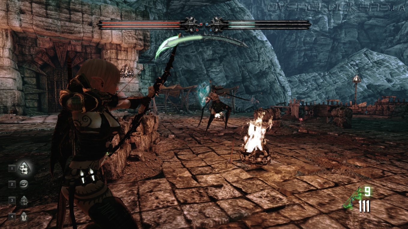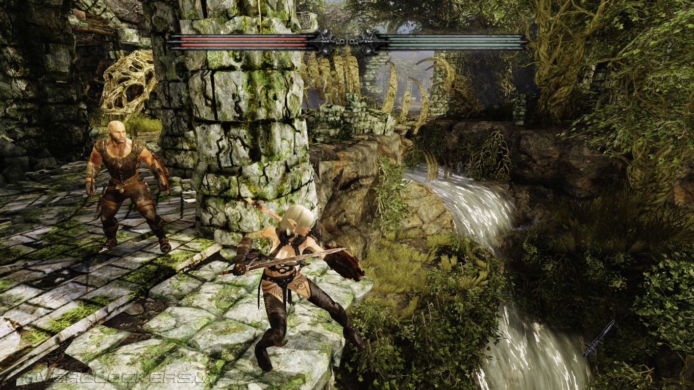 При создании игры большой акцент делался на кооперативное прохождение, поэтому каждый из героев имеет свою специализацию. Человек — боец ближнего боя, а эльфийка — конечно же, лучница. Впрочем, при необходимости первый может прибегнуть к арбалету, а Э’лара воспользоваться своим мечом, но эффективность их в такой роли ниже. Можно было бы сказать, что битвы строятся на взаимодействии и командной работе, но слаженные действия напарников требуются не так часто. Никаких развилок тут нет, локации невелики, нет простора для тактики. Главное, вовремя уничтожать все, что шевелится, и не забывать прикрывать товарища, если тот попал в самое пекло. Смерть наступает не сразу, есть еще время на то, чтобы поверженного бойца вернул в строй компаньон с помощью восстанавливающего зелья.
