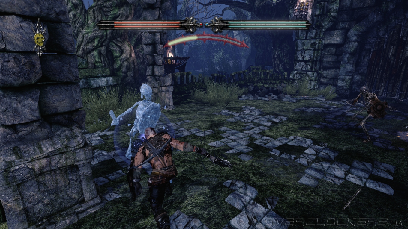 Определенный интерес к игровому миру поддерживают различные тайники. Кроме разбросанных в закоулках кристаллов и слез дракона, есть еще и секретные места, в которых можно добыть особые артефакты. Тайные места, как в Fable, закрыты древними говорящими дверями, любящие загадки. Обычно все сводится к зажиганию пламени в глазницах или сбору каких-то ингредиентов. За решением далеко бегать не придется, но увидеть его будет сложно. В темных подземельях активные объекты иногда просто не различить, а если во время поисков ингредиентов вы случайно пройдете через дверь на новую локацию, то вернуться назад уже не сможете, равно как и загрузиться с предыдущей контрольной точки. Придется переигрывать весь эпизод заново. С другой же стороны, некоторые контрольные точки разделены слишком большими промежутками и даже роликами. Может статься, что выйдя из игры после прохождения какого-то этапа, вы обнаружите себя в следующий раз в начале прошлого эпизода. А все потому, что после преодоления очередной разделительной двери надо было сделать шажочек вперед для срабатывания автосохранения.