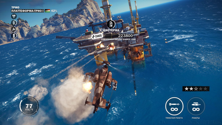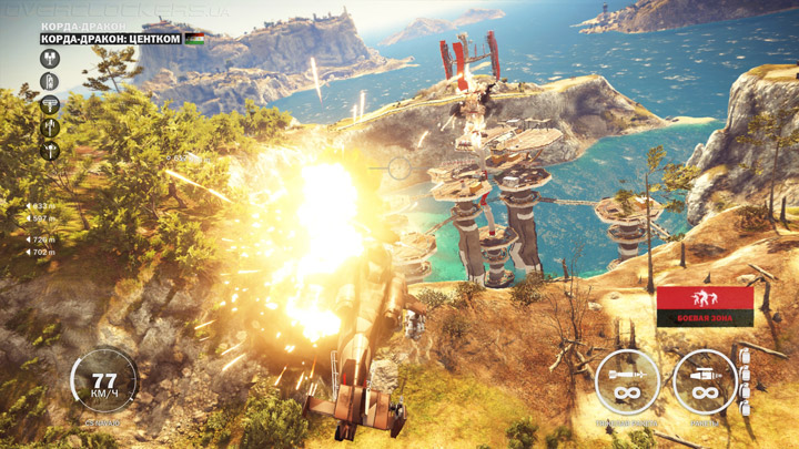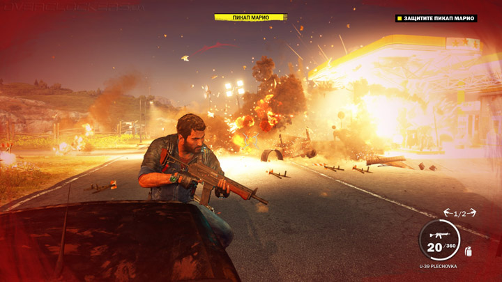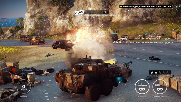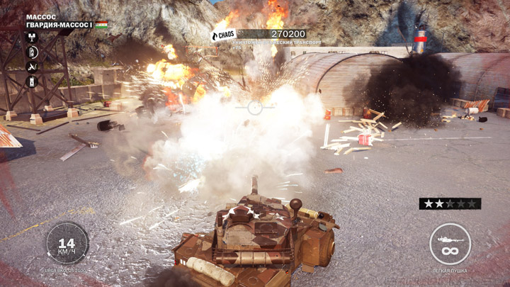 Игра сразу берет быка за рога, бросая игрока в эпицентр воздушной битвы, где протагонист Рико, оседлав самолет, отбивается от наземных и воздушных сил из РПГ. Все это быстро перерастает в погоню и веселую стрельбу из танка.