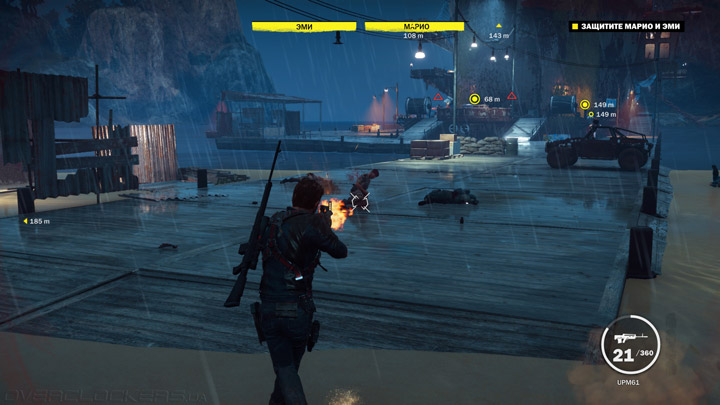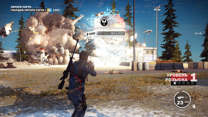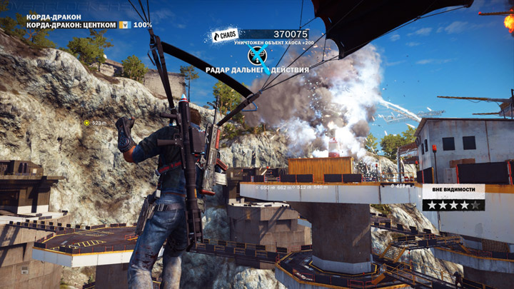 Крюк теперь работает несколько иначе. Он дает больше возможностей в соединении предметов. Так что какую-нибудь взрывающуюся бочку можно легко подцепить к врагу или танку. Но с его помощью уже нельзя сбрасывать врагов вниз. Во время сматывания троса Рико сам мчится к цели, тараня ее ногами. Эффективность этого приема слабее. Кстати, и сам герой стал менее проворным при передвижении на своих двух. И это иногда доставляет неудобств. С другой стороны, это лишь стимулирует к более частому использованию крюка для стремительной смены позиции.