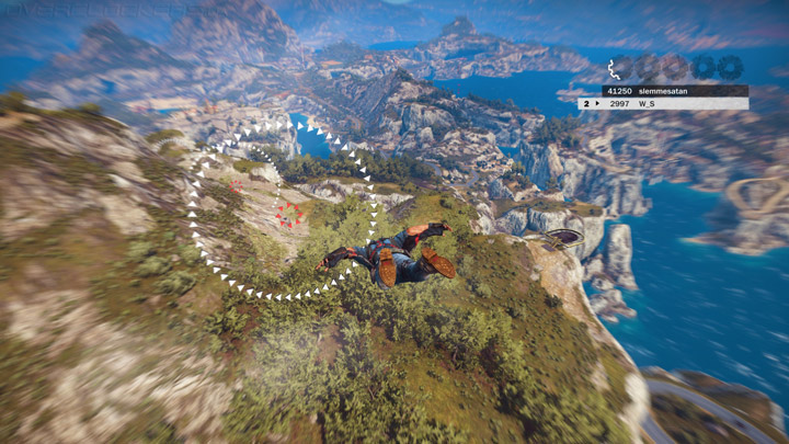 Подобные задания не просто дают возможность отточить мастерство, но и позволяют прокачать героя. В Just Cause 2 система развития базировалась исключительно на поиске ящичков. Чем больше вы собирали их, тем лучше был какой-то параметр. Теперь очки для улучшений зарабатываются в заданиях-испытаниях. И чем больше итоговый счет по выполнении каждого задания, тем больше шансов открыть новое улучшение. Каждое испытания связано с определенной направленностью. Гонки позволяют купить какие-то особые перки, связанные с вождением, полеты на вингсьюте дают улучшения в соответствующей сфере.