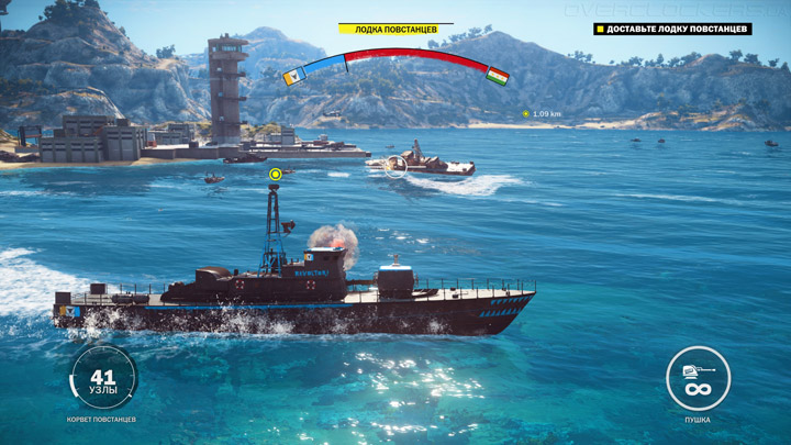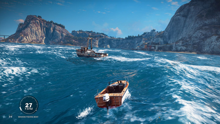 В Just Cause 3 отлично реализована динамическая поверхность воды. За основу взята технология визуализации NVIDIA GameWorks. Поведение воды и волн совершенно разное в тихой бухте и на открытых пространствах. Катера реалистично раскачиваются и прыгают по крупным волнам.