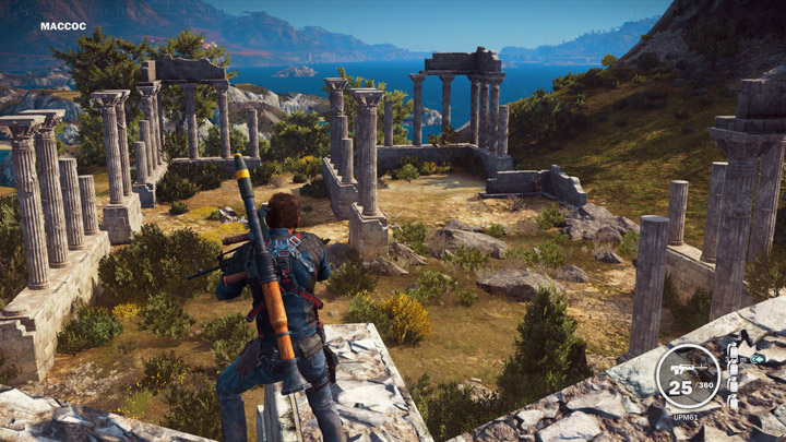 Just Cause 3 привлекает игрока благодаря добротной базовой механике. Кроме огнестрельного оружия в арсенале Рико взрывчатка и специальные средства, которые ускоряет его передвижение. Это парашют и крюк, что позволяет Рико преодолевать любые препятствия, прыгать с гор, взбираться на высотные здания или просто взмывать в воздух, правильно сочетая притягивающую силу крюка и тягу парашюта.