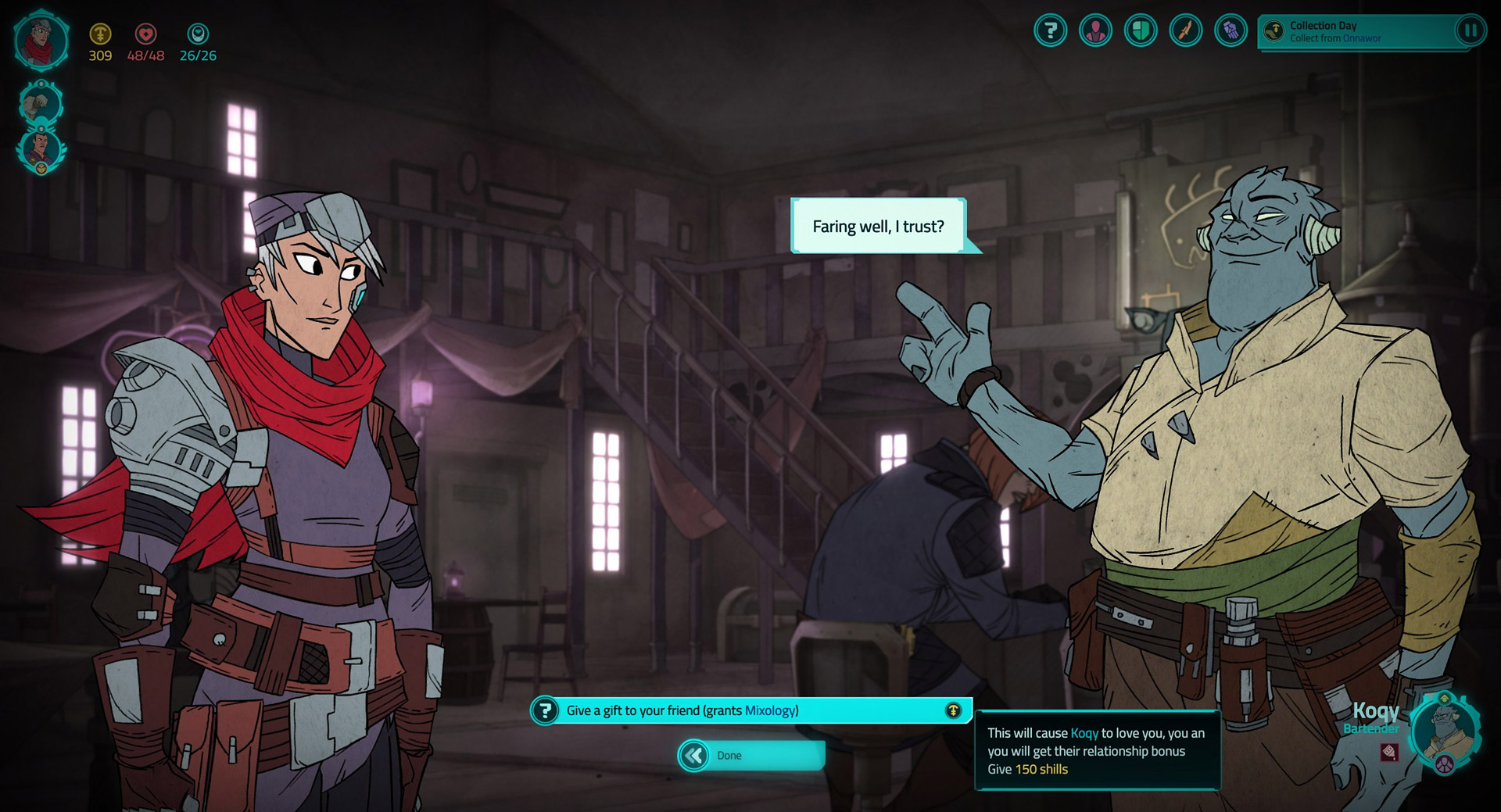 Взявшись за Griftlands, разработчики загорелись идеей сделать увлекательную процедурную RPG, однако именно ролевая часть тайтла не давала им покоя. Команде сразу удалось создать интересный мир и найти нужный визуальный стиль, но, несмотря на сильную геймплейную концепцию в теории, на деле игра казалась просто скучной.