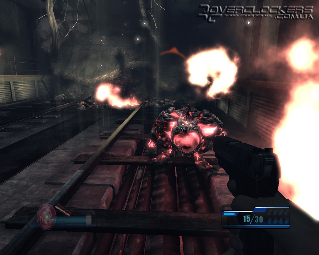 Хотя и это не сильно спасает общую ситуацию, ведь все старательно замылено темными цветофильтрами (как в Gear of War), так что темные уровни вообще выполнены в какой-то грязной цветовой гамме.