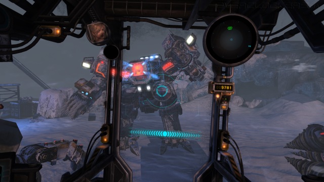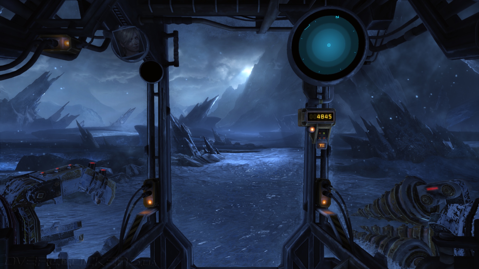 Поскольку в игре речь идет о простых ученых и рабочих, то у них нет с собой боевых роботов, которых в избытке было в прошлых играх. На вооружение у героя машина, ориентированная на бурение. Это не скоростной робот, ощетинившийся ракетами и лазерами и будто сошедший с экрана японского мультика, а большая инертная махина на вооружении которой лишь мощная клешня и бур. Во время управления таким роботом камера предлагает вид строго от первого лица, позволяя наблюдать мир через толстое окно кабины. Стекло по ходу путешествия покрывается корочкой льда и трещинами от повреждений. Внутри горят разные датчики, сбоку висят фотографии, трясет головой игрушка. А дополняет полный эффект погружения та самая фотография жены над головой.