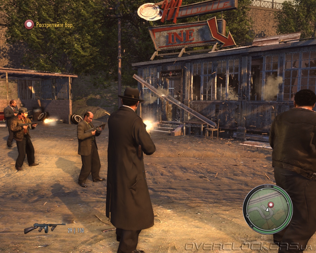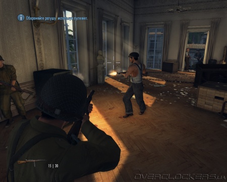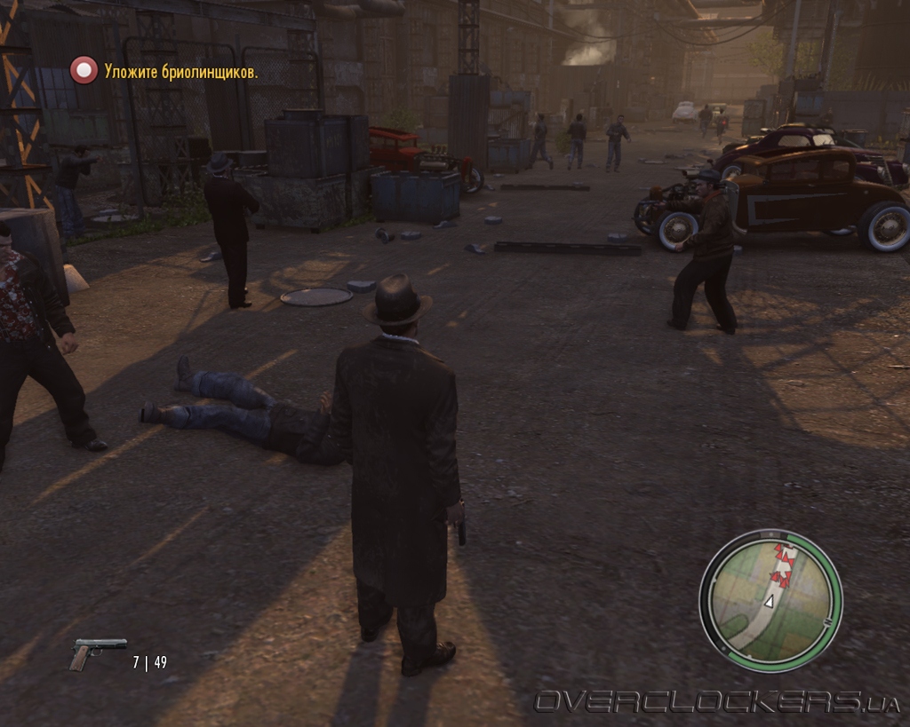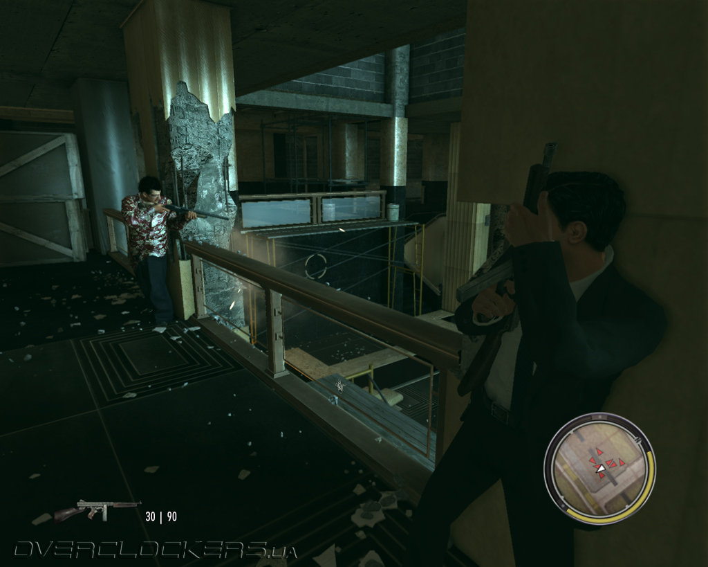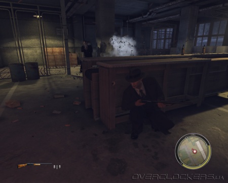 Противники тоже любители отсиживаться за ящиками и колоннами, из-за чего такая «окопная война» без активных действий со стороны игрока может затянуться. С другой стороны, если дизайн помещения довольно хитрый, то враги могут под прикрытием ящиков обойти нас с фланга или через коридорчик выйти со спины. С учетом «прилипания» Вито к стенам укрытий это бывает фатально, потому как быстро словить в прицел боковую цель не получится из-за ограниченного угла обзора в таком режиме. Вначале извольте отойти от стенки с помощью специальной клавиши, а там уже вертитесь по сторонам. Неудобно, но с учетом заскриптованости происходящего и минимума больших территорий, где компьютерные болванчики позволяют себе маневры, — это не смертельно.
