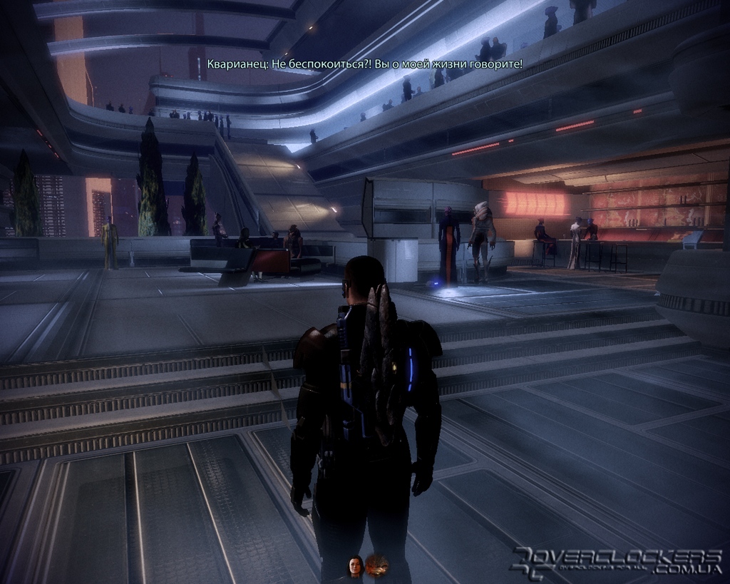 Вообще, разработчики умело маскируют недостаток пространства. Ведь на станциях и планетах нам доступны совсем крошечные локации. Но вместе с тем вокруг нас нарисованы огромные города и пространства, недоступные для нас верхние уровни наполнены людьми, какие-то транспортные средства снуют туда-сюда. В итоге, несмотря на несколько квадратных метров, по которым нам дают прогуляться, и узким коридорам, ведущим только в одном направлении, всей это ущербности как-то и не замечаешь.
