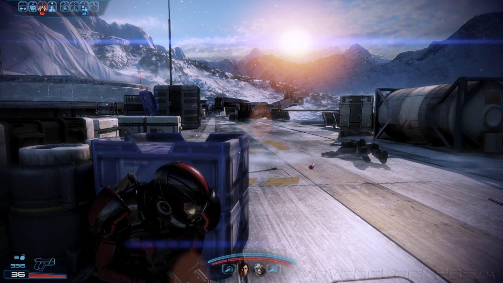 Графика с прошлой части не изменилась. Хотя стало больше крупных уровней с проработанными задними планами. Плюс световые эффекты и разные блики делают изображение приятнее. Исчез эффект зернистости. Из-за этого картинка стала четче, но стали больше бросаться в глаза слабенькие текстуры и некоторые другие огрехи. Поэтому определенные локации выглядят невзрачно. Взрывы и разные вспышки неплохо смотрятся в режиме паузы, когда можно покрутить камеру. В целом, графика по нынешним временам средненькая, но порою Mass Effect 3 радует глаз симпатичными пейзажами. Системные требования очень скромные. Высокую производительность в Full HD способны обеспечить даже low-end видеокарты современного поколения.