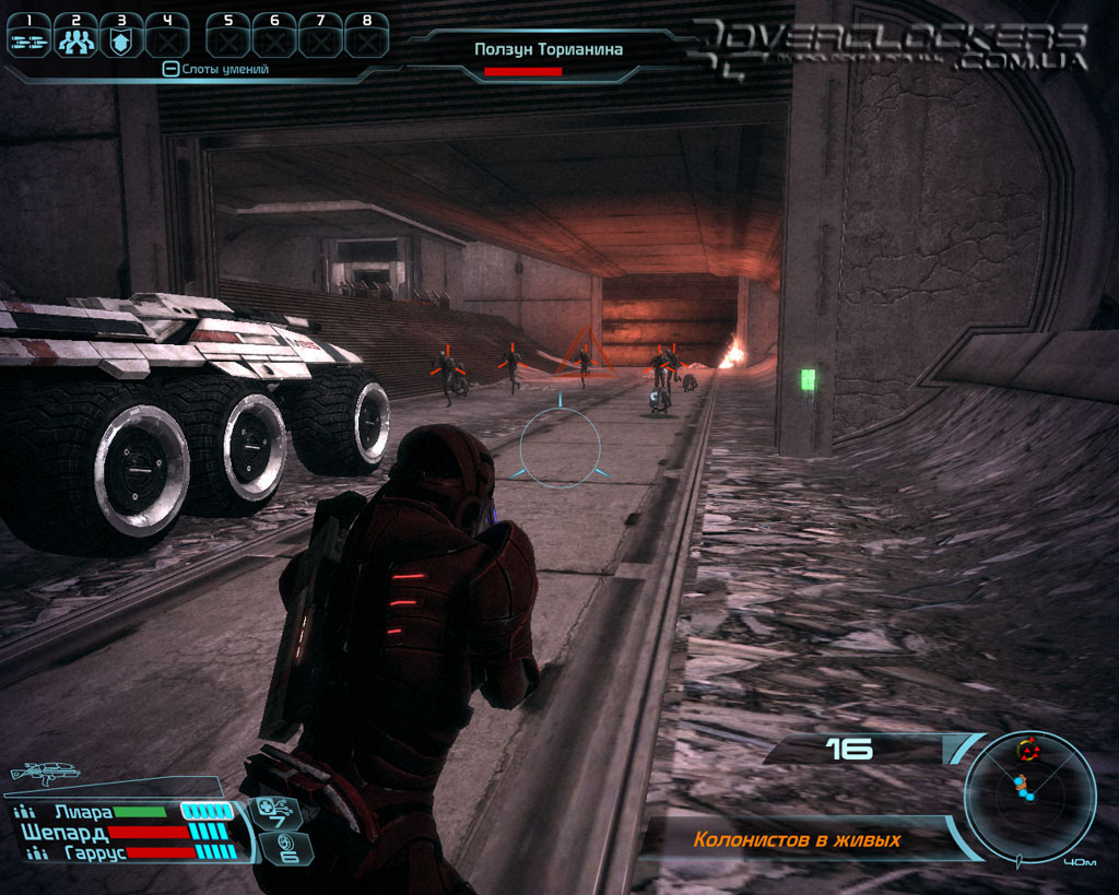 В любой момент мы можем войти в инвентарь и поменять оружие или установить апгрейд на него. Второе удобно, если, к примеру, у нас бонус против живых существ, а вдруг понадобилось поставить дополнительное устройство, повышающее урон дроидам-синтетикам. Набор вооружения для каждого члена нашей команды стандартен. Вот только те, кто не имеет навыка обращения с каким-то видом оружия, получают штраф при его использовании. Биотиков и техников отличают отдельные слоты для своих устройств-имплантантов, повышающих некоторые вторичные характеристики.