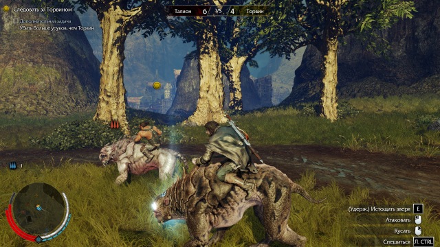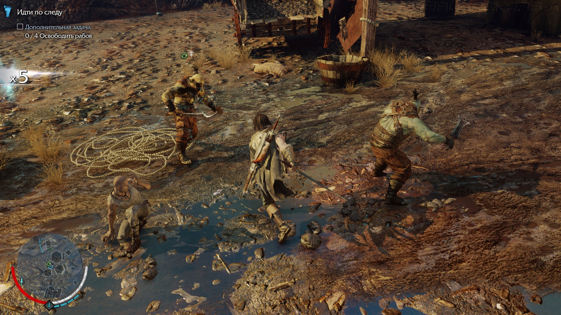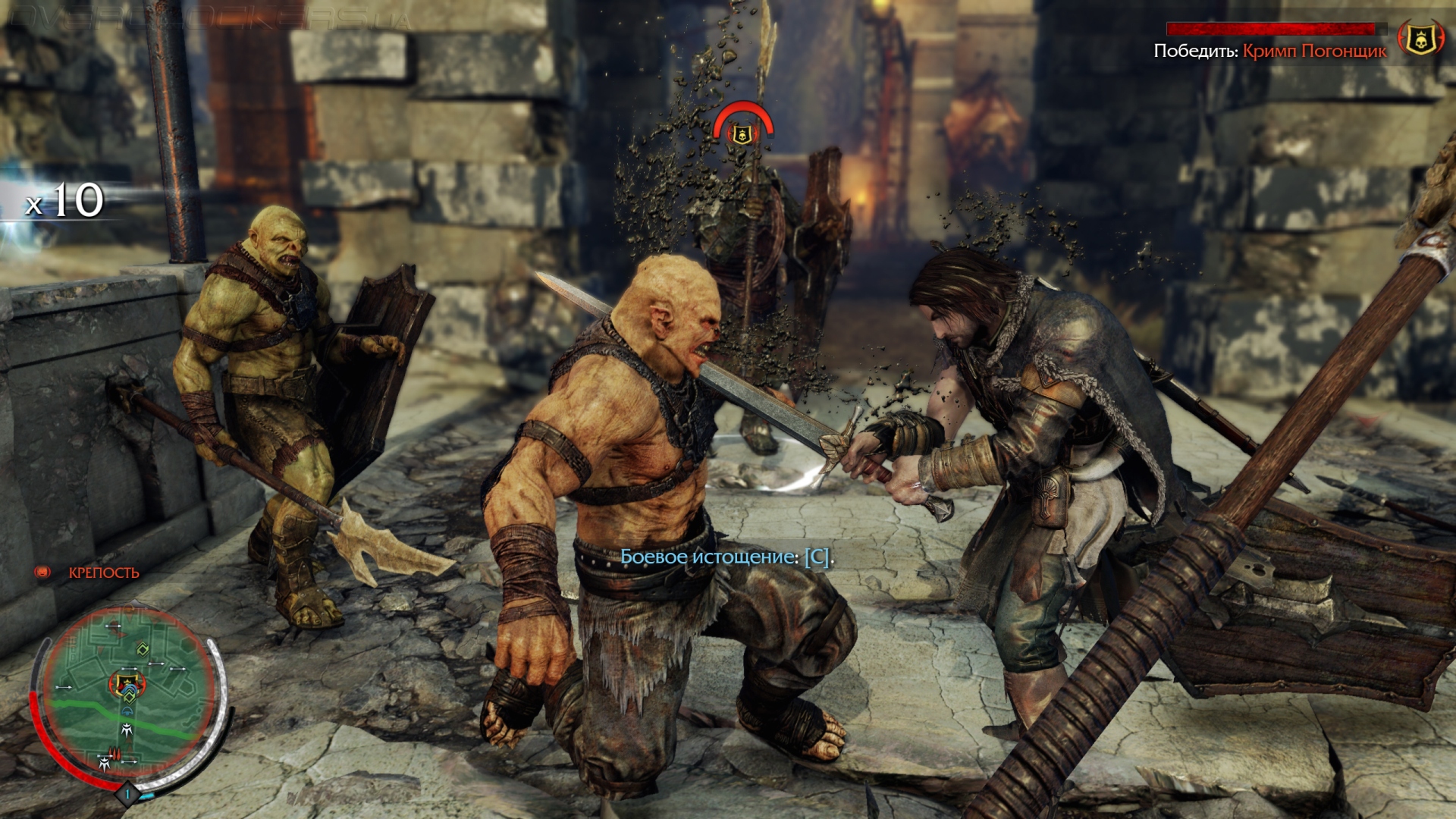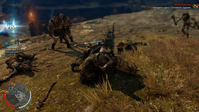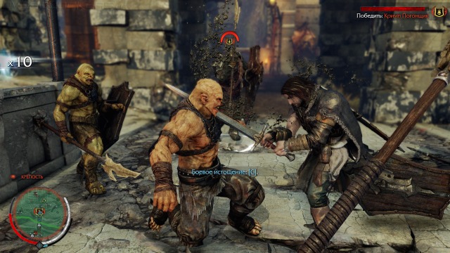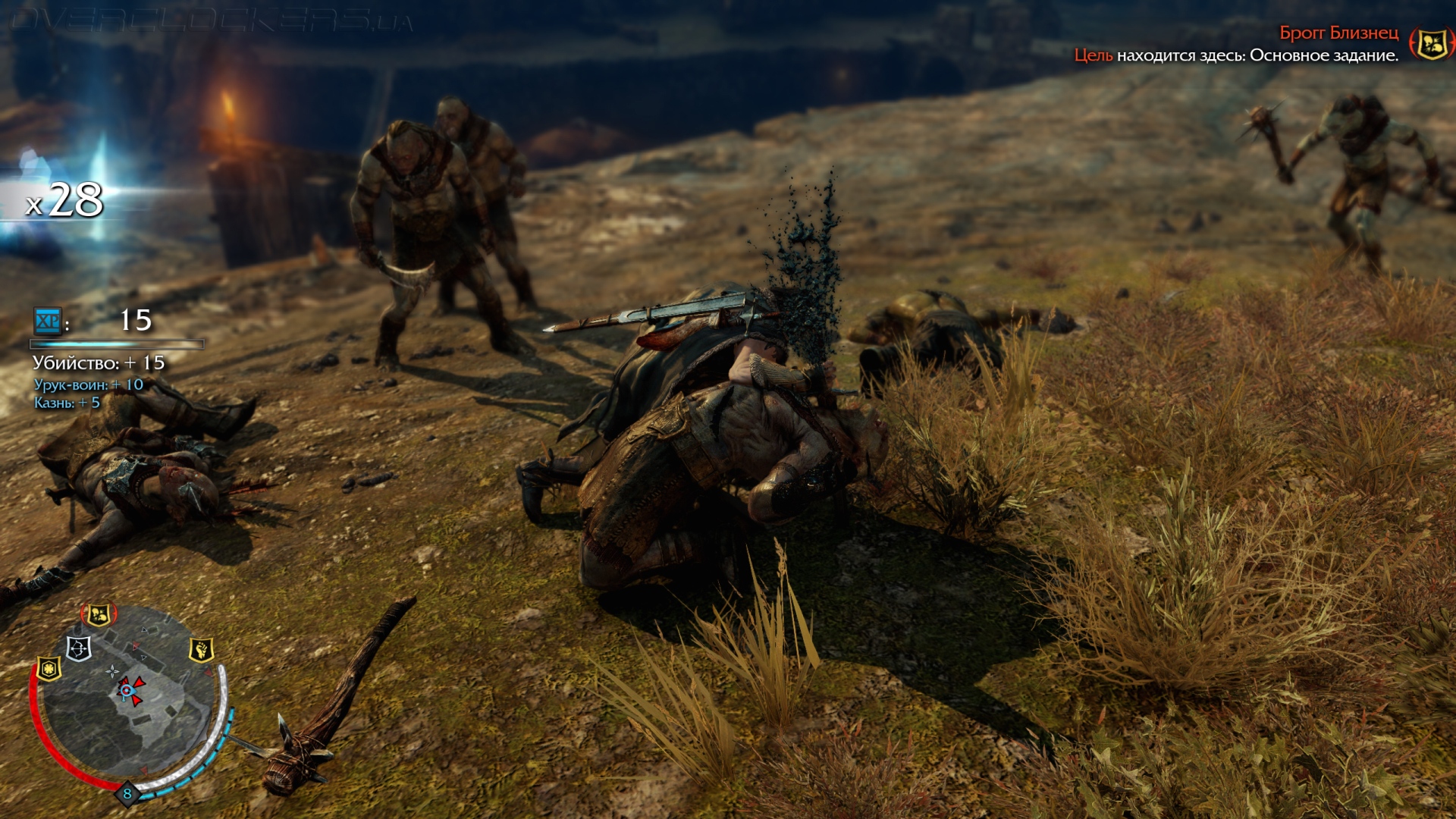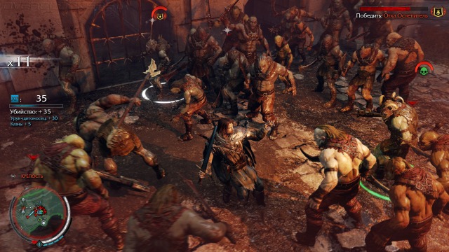 Что до самой боевой системы, то она напоминает серию Batman: Arkham — вовремя ставим блоки, наносит ответные удары и перепрыгиваем через врагов. Есть красивые добивания с фонтанами черной крови. Присутствует возможность стрельбы из лука, метания ножей и разные особые приемы. Все это открывается постепенно, а некоторые навыки с течением времени улучшаются. Так, прыжок через врага может его оглушать, попадание из лука в ногу замедляет и много чего иного. Система прокачка разбита на несколько направлений. Боевые навыки и общие умения улучшаются за счет очков опыта, а параметры оружия повышаются благодаря рунам, являющимися наградой за убийства командиров. Есть еще и ряд побочных заданий, которые могут открыть более мощный лук, меч или кинжал. Так что игра умело стимулирует игрока к активным действиям в открытом мире.