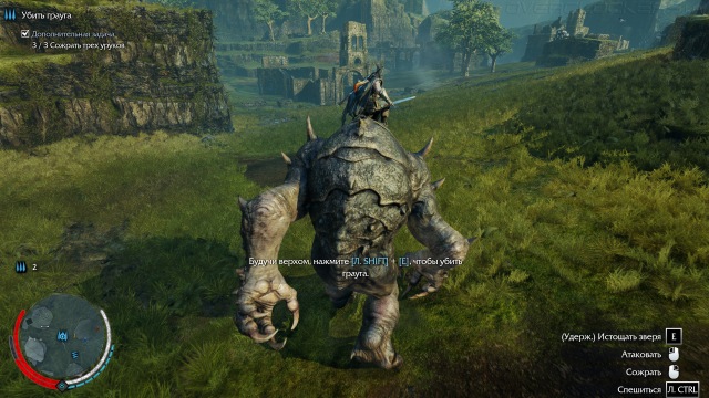 Чувствуется определенная непродуманность в мелочах, а от быстрого респауна возникает ощущение навязчивости. Борьба с командирами тоже приедается. На определенном этапе даже возникает ощущение однотипности. Кажется, что ничего нового уже игра не преподнесет. Но тогда ситуацию оживляет смена обстановки. Герой перебирается на другую локацию, где нас кроме развалин и урукских замков поджидают еще бурные травы и яркое солнце. После приевшихся пробежек по серым локациям эти бесхитростные пейзажи даже вызывают восторг. Сюжет тоже набирает обороты, снова подливая масла с огонек интриги. Тип заданий несколько меняется. Возникают интересные «конные» прогулки, миссия, в которой приходится оседлать огромного монстра. Потом все тоже сводится к борьбе с командирами, чтобы достичь их верхушки, но уже в несколько ином контексте.