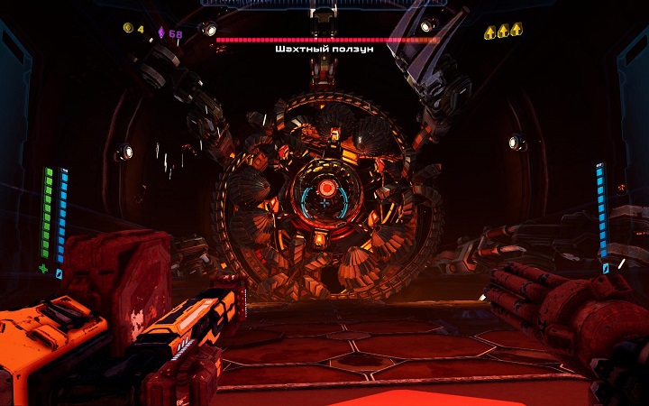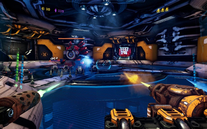 После прохождения начальных заданий и встречи с боссом на весь экран, выясняется, что Mothergunship не про стрельбу, а про бег с уворотами и прыжки. Местные уровни в случайном порядке напичканы или полчищами вражин, которые стреляют ракетами, залпами лавы, энергии и прочей дряни, или парой тройкой тупых турелей, что убиваются на раз. В здешней боёвке правит балом её величество удача, а что ждет впереди, вырвижопная локация или унылый гринд, до входа туда неизвестно.