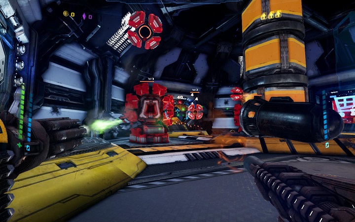 Mothergunship выглядит красиво и просто. Игра создана на Unreal Engine 4, но видно, что разработчики воплотили далеко не все возможности движка, отчего графике не хватает чёткой картинки и детализации. Зато проект лоялен к слабым ПК и легко запускается на максималках даже с видеокартой на 1 ГБ. Это же не даёт игре подвисать, тормозить и проседать по fps.