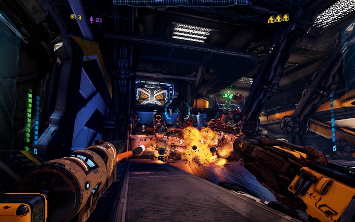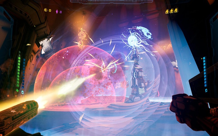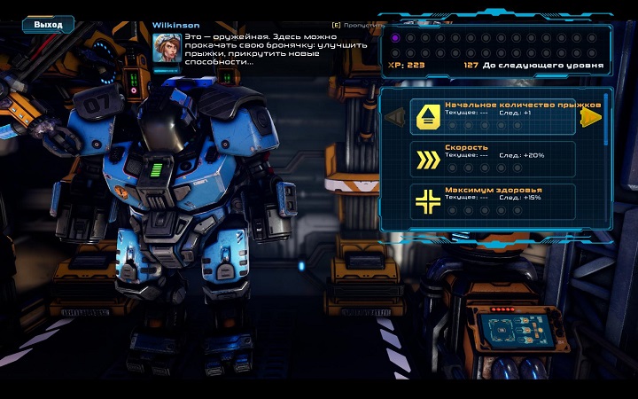 Roguelike-составляющая игры, с одной стороны, упрощает работу создателям и без проблем делает сотни разнообразных комнат. Но после первых часов обстановочка проекта приедается, а от армии одинаковых противников тошнит. Хорошо, что знают об этом и создатели, поэтому сюжетная компания с побочными миссиями занимает не больше 4–5 часов. Дальше геймер волен продолжать прокачивать экзоскелет, извращаться в крафте эпичного оружия и ждать кооператив, который подвезут в августе.
