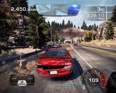 На каждую гонку дают ограниченное число такого «оружия», что заставляет использовать его более разумно. Если быстро израсходовать все сразу, то под конец гонки будет проблематично разобраться с ушедшими вперед противниками или сбросить с хвоста полицеский автомобиль. Да и использовать каждый «девайс» следует в наиболее удачный момент. Так, от ЭМИ-пушки нет особой пользы на прямом участке трассы, но зато эта секундная дестабилизация будет очень кстати перед резким поворотом. Удачно словить момент, затормозить противника и, использовав «нитро», врезать в бок жертве так, чтобы она покатилась по асфальту, извергая снопы искр — в этом вся прелесть гонок, и именно это держит у экрана. В основном это занятие копов, но и в простых гонках адреналина не меньше, ведь приходится и с противниками соревноваться, и от полиции уходить. А с учетом того, что участников на трассе только больше, столкновений и неожиданных ситуаций тоже будет больше.