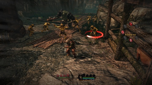 С разнообразием у Of Orcs and Men тоже большие проблемы. Все завязано стандартной формуле: небольшой коридор из нескольких сегментов, которые нужно поочередно зачистить. Даже штурм крепости проходит в таком режиме, что смотрится весьма глупо. При этом болванчики из соседнего сегмента не слышат ничего происходящего за углом. И всегда вначале нужно задействовать Стикса, чтобы предварительно проредить ряды врагов.