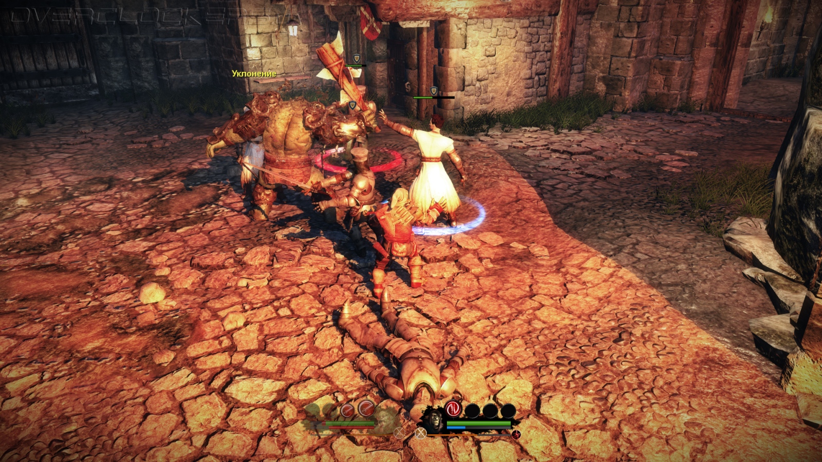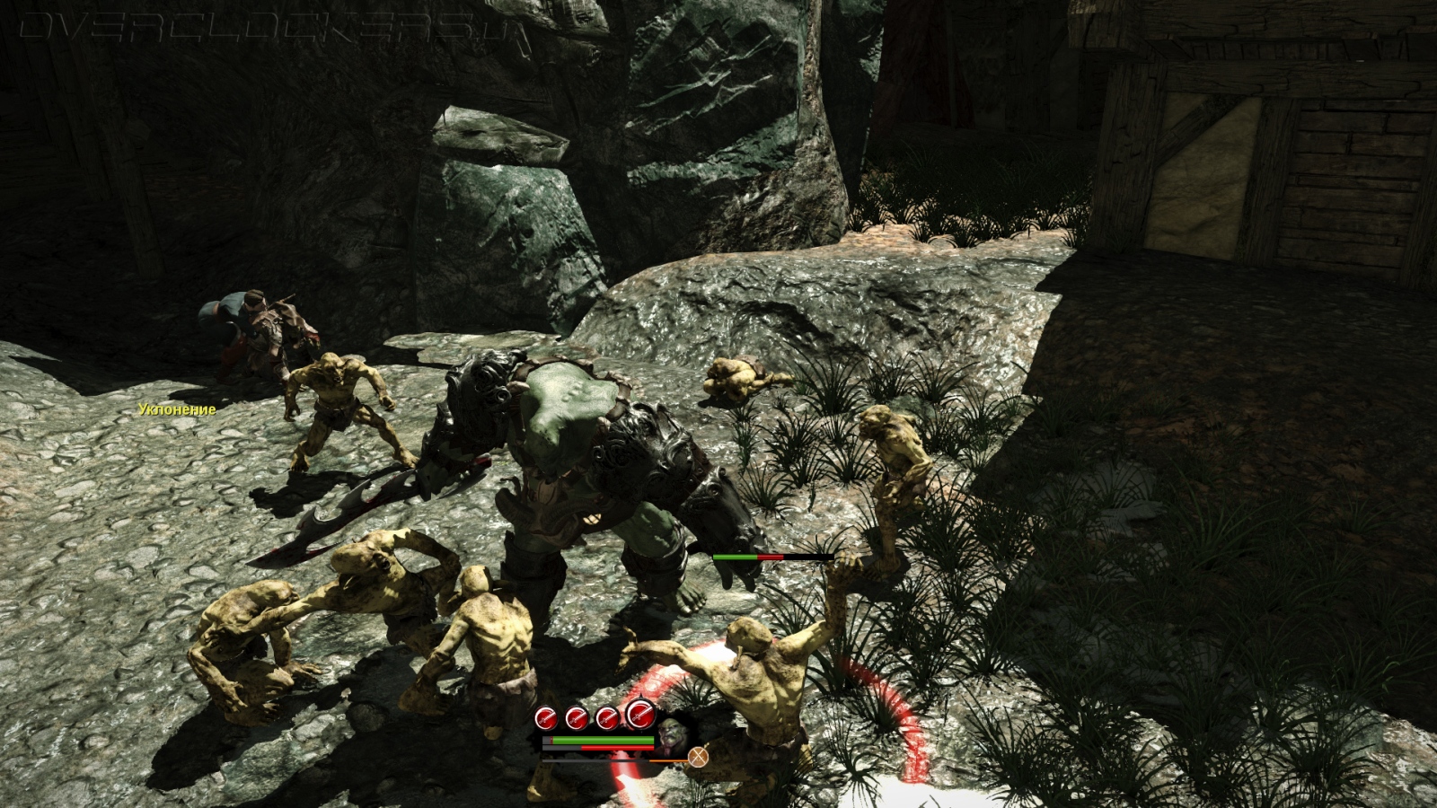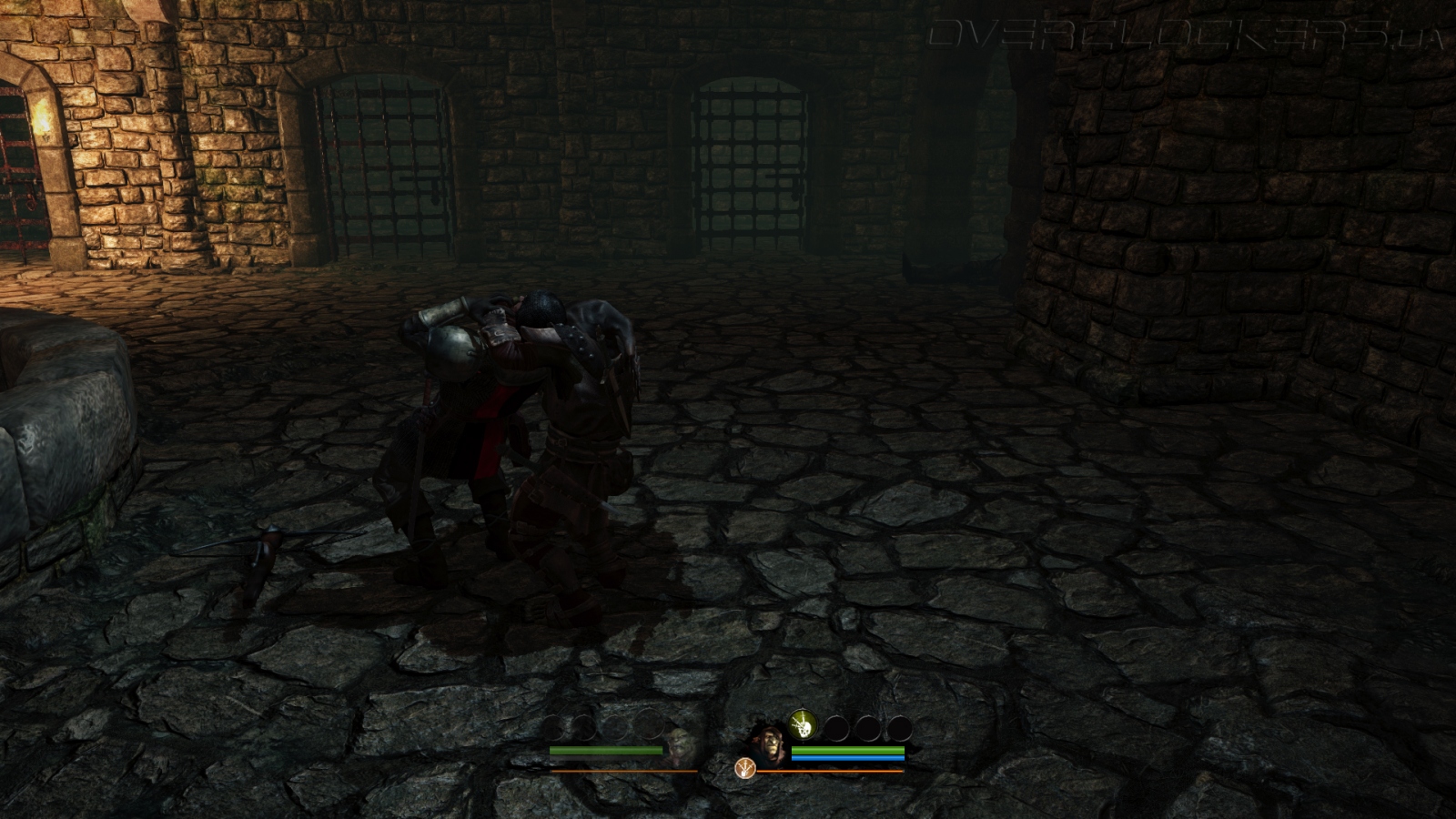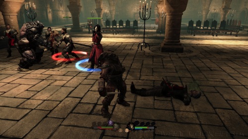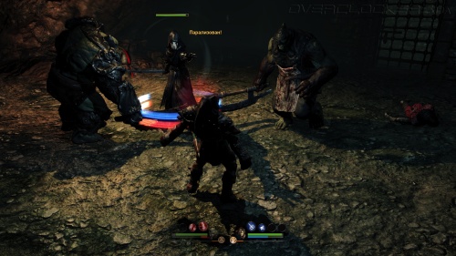 Проблема в том, что орк на деле оказывается не сильно то и могучим, скорее неуклюжим. Все его мощные приемы являются серией ударов. Так что пока Аркейл усердно мутузит одного врага, ничто не мешает другим бить со спины. При этом игра просчитывает определенные штрафы на удары и атаки. Так что некоторые удары легко парируются или прерываются, другие никто не может прервать, но урон от них минимальный. С защитой у орка и вовсе большие проблемы, в таком режиме он наименее эффективен. При накоплении ярости герой входит в режим берсерка, рубит всех и вся, но не уделяет никакого внимания защите и не подчиняется приказам игрока.