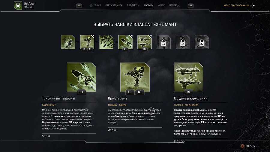 Каждому классу доступна своя ветка прокачки и определенный набор умений, которые открываются по мере роста уровней. Правда, одновременно выбрать можно только три. На этом и на типе вооружения строятся тактики боя, где одни находятся на максимальном расстоянии от противника, расставляя на его пути ловушки, ракетные установки и прочее. Другие же подпускают врагов ближе, а потом активируют смертоносный арсенал.