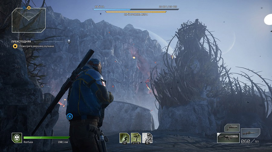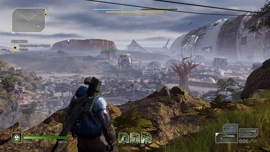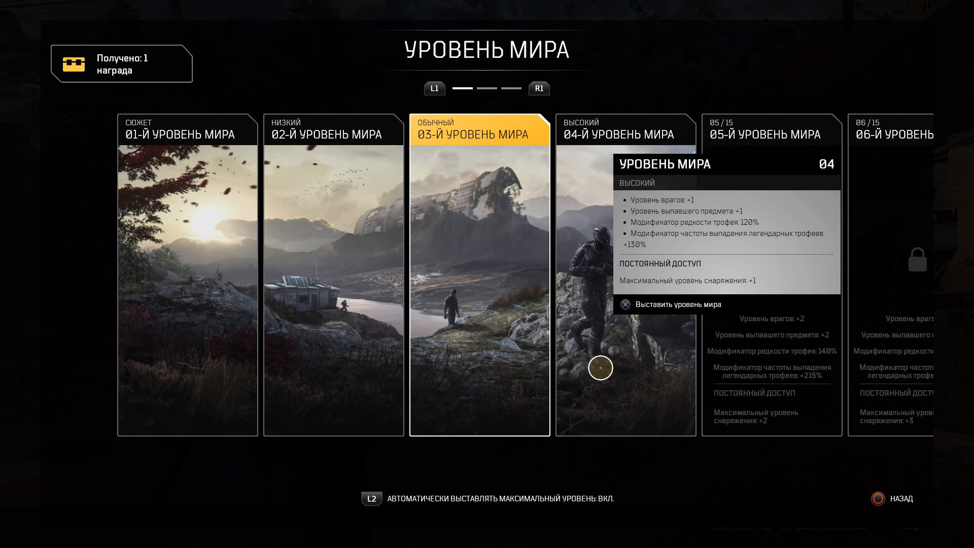 В Outriders есть два уровня — персонажа и мира. Чем дальше мы проходим сюжет, тем левелы мира растут и автоматом ставятся на максимальный. При таком раскладе из противников и боссов выпадают лучшие вещи. А если какая-то часть истории проходится сложно и вы часто умираете, то уровень мира можно понизить на несколько пунктов, а потом вернуть обратно. Естественно, чем ближе к финалу, тем играть на максимальном уровне сложнее.