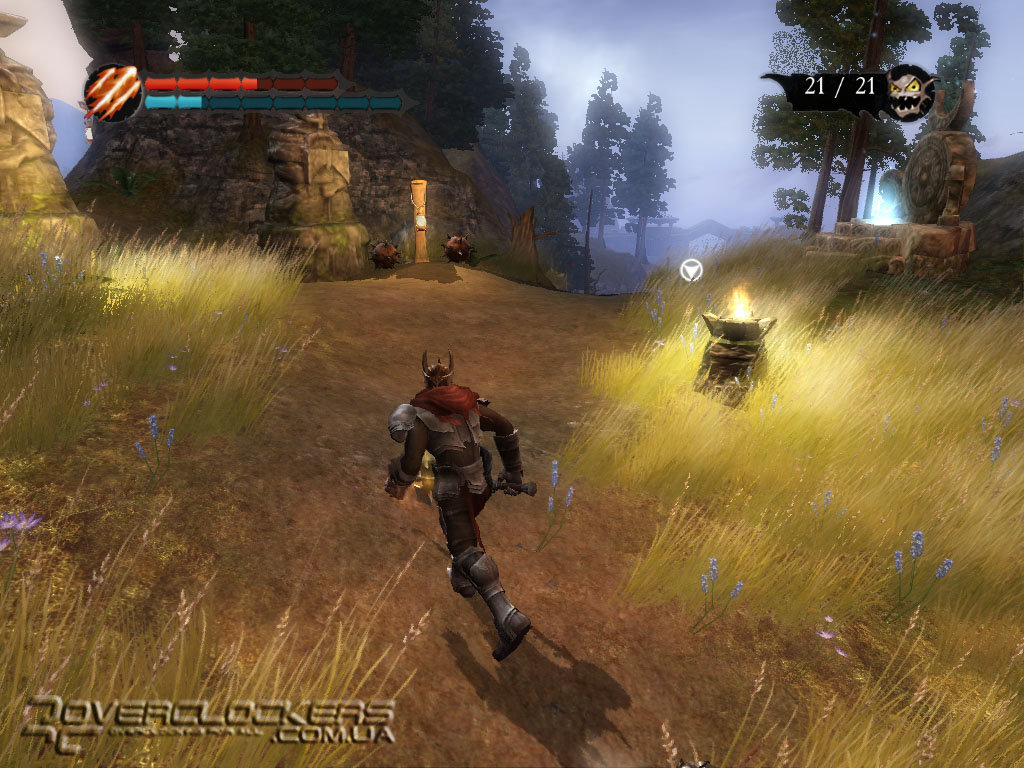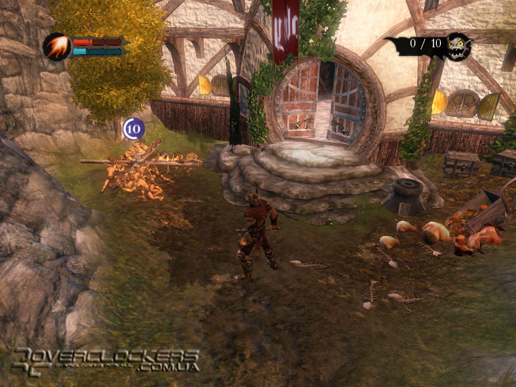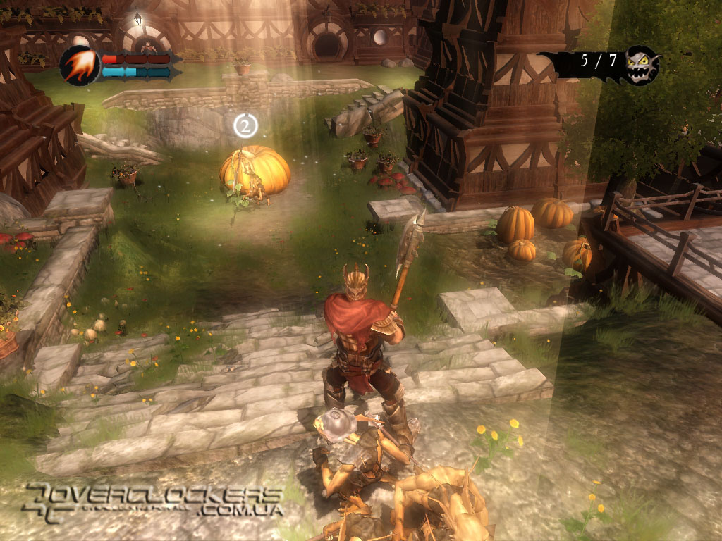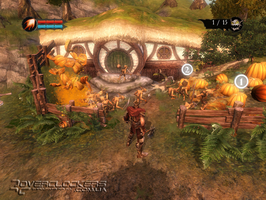 Управление своей армией довольно просто – посмотрели на цель и направили бойцов туда лишь одним кликом мыши. Они с удовольствием бросаются на врага, заодно круша и ломая все по пути под веселое улюлюканье. Весь этот беспредел смотрится весьма забавно. Наши маленькие разбойники не наделены особым интеллектом и могут нацепить на голову разбитую тыкву вместо шлема, прыгают по столам, с удовольствием осушают бокалы с пивом, гоняют бедных овец, не забывая при этом повторять свою коронную фразу со словами «for you, Master».