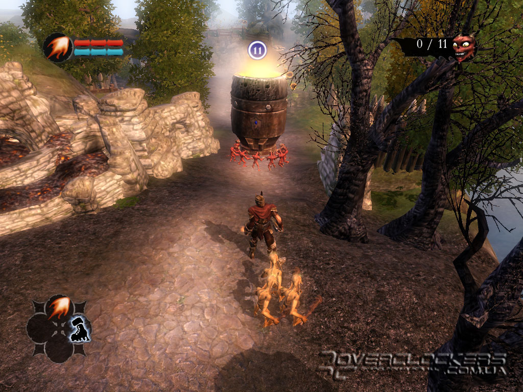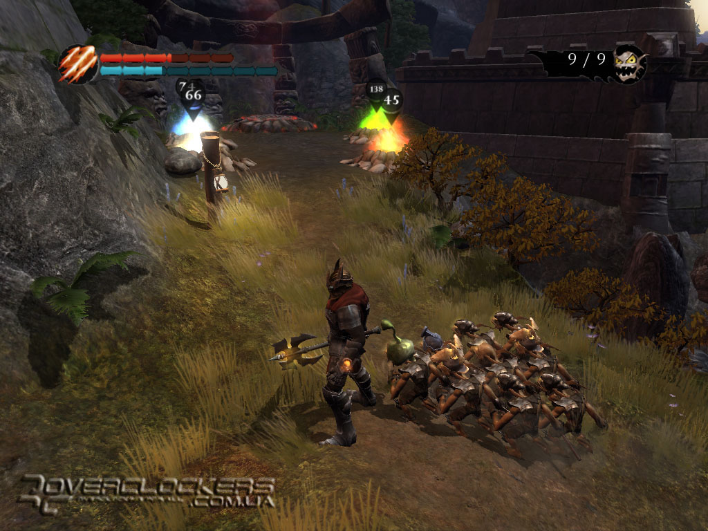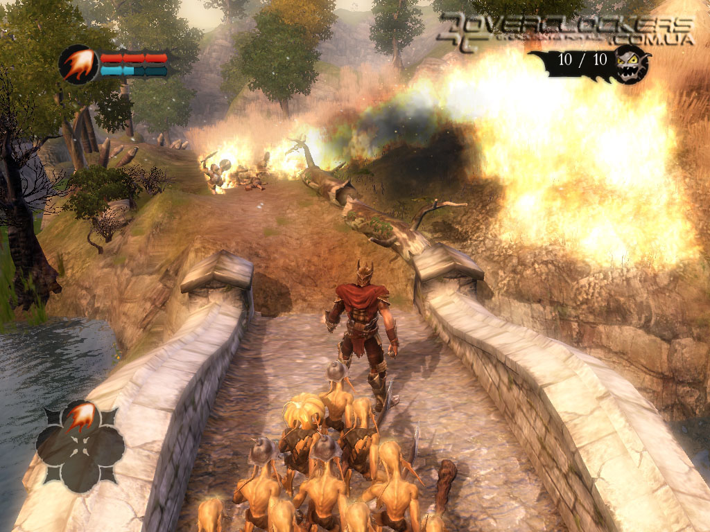 Сам же главный персонаж кроме внушительного меча или топора может использовать в бою и разнообразную магию. Есть заклинания атакующие и оборонительные. Можно испепелить врагом огнем или вызвать временный щит, защищающий наше войско.