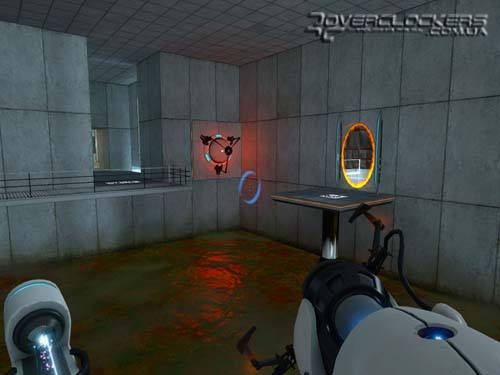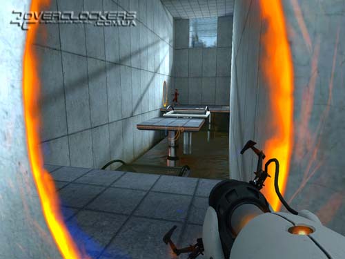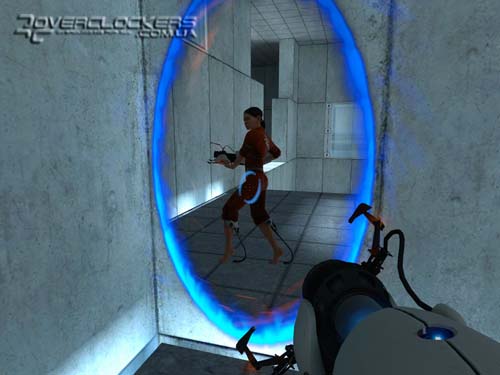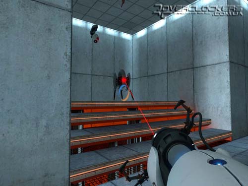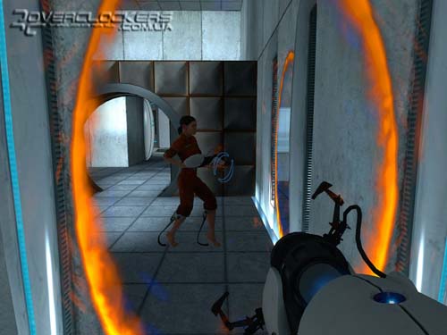 С помощью нашего единственного оружия нам придется выполнять поистине невероятные вещи и акробатические трюки. При прохождении через портал действует закон сохранения энергии. Чтобы куда-то запрыгнуть, можно упасть в портал и вылететь из другого. И такой прием не единственный, который нам придется использовать. Прыгать в один портал, вылетать из другого, в воздухе сразу делать новый портал и лететь в него, одновременно кувыркаясь и переворачиваясь под воздействием силы гравитации, ведь летим мы то вниз, то вверх. Набор и сочетание трюков таков, что иногда может вызвать настоящее головокружение. Но чтобы все это выполнить надо еще и догадаться о соответствующей комбинации движений и порядке размещения порталов.