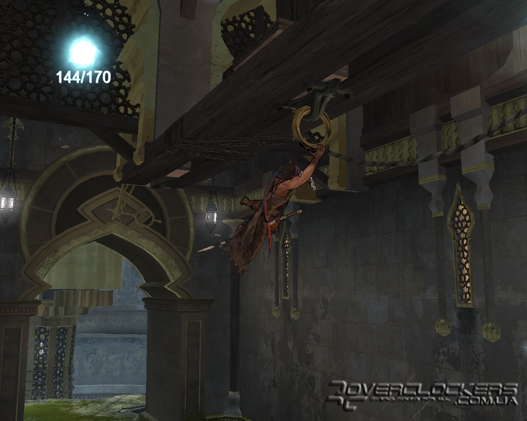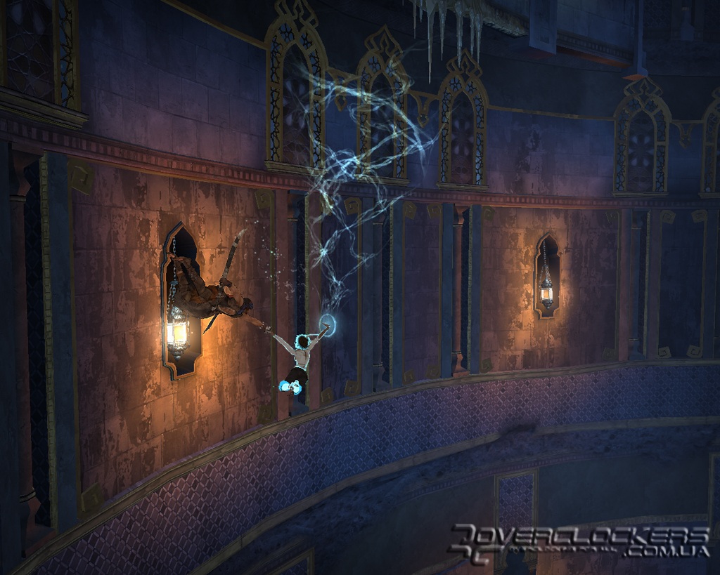 К способности к прыганью и лазанию по всему чему только угодно добавилась возможность передвижения по потолку. А кому собственно нужна эта гравитация?! Дайте нашему принцу точку опоры и он может и не перевернет мир, но, перехватившись за какое-нибудь кольцо, отлично преодолеет несколько метров по потолку не хуже какого-нибудь спайдермена.