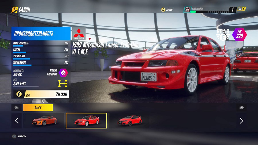 На каждую трассу в Project CARS 3 не выдают определенную машину и не просят прийти первым, как это было раньше. Теперь авто разрешают покупать за игровые деньги, полученные за прокачку уровня водителя. Они также улучшаются и кастомизируются. Каких-то серьезных наворотов в этом плане нет, а конструктор дизайна намного беднее той же Need For Speed Heat.