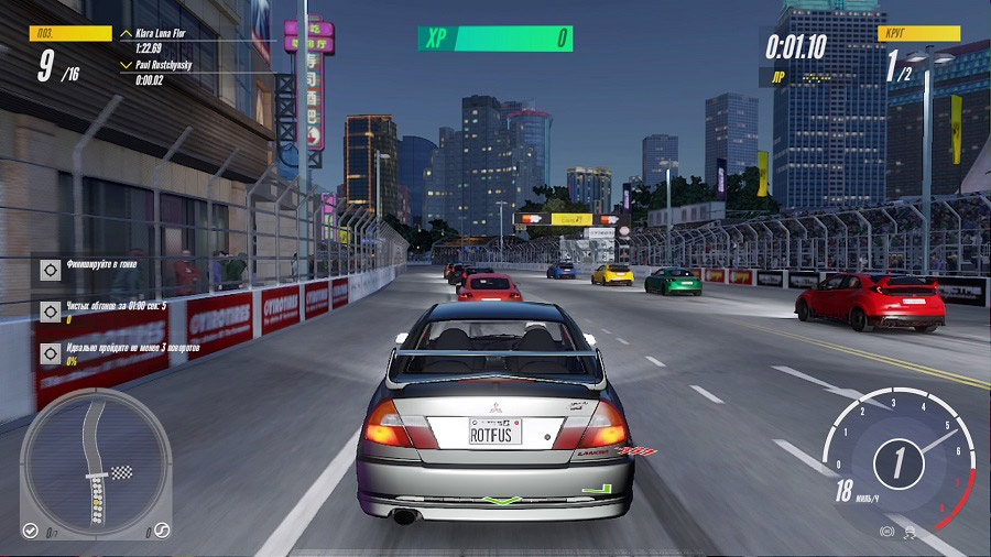 Локализация добротная. Ошибок в переводе не замечалось. К звуку претензий нет, а музыка с трасс часто просилась в плеер, но в то же время не напрягала и не отвлекала от вождения.