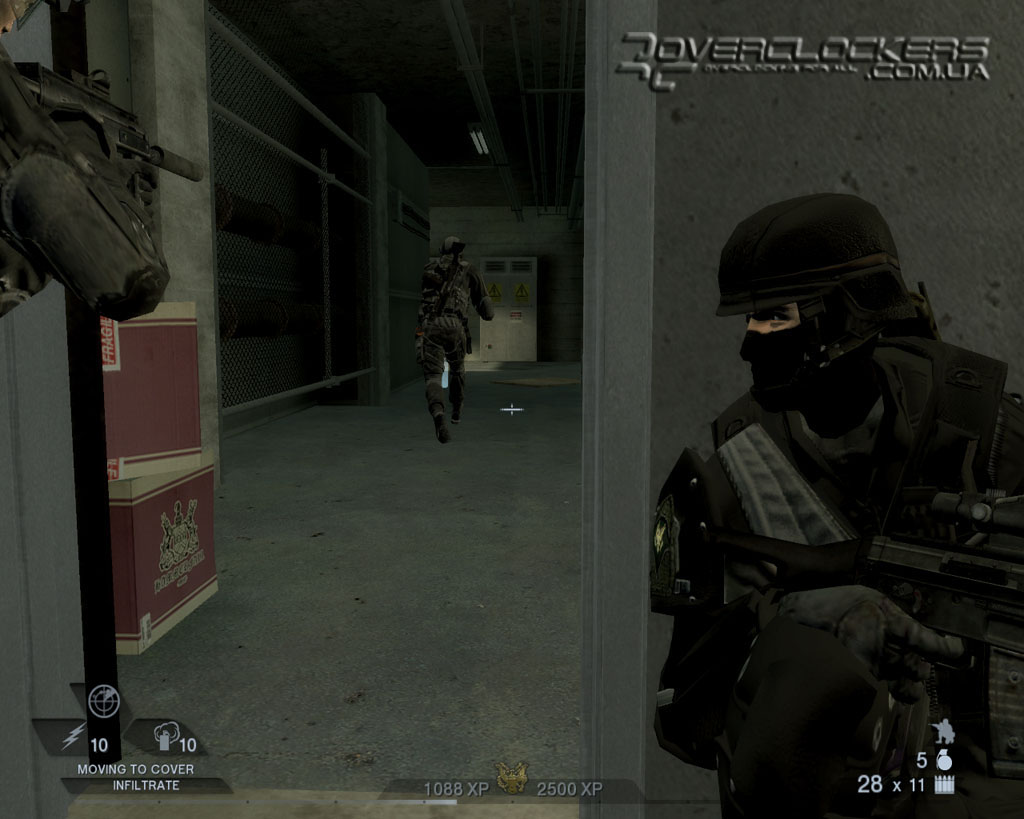 Наши виртуальные напарники - образец командной работы. Управлять ими легко, щелкнули на дверь, и они заняли соответствующую позицию. Опять же имеется небольшой простор для тактики. Через миникамеру мы можем осмотреть, что находится за дверью и оценить ситуацию. Большие помещения обычно имеют несколько входов. Правильно скоординировав нападение, мы можем быстро покончить с террористами. Напарников ставим на одну дверь, сами идем к другой. Подав команду на штурм, одновременно входим и перекрестным огнем стремительно разбираемся с врагами.