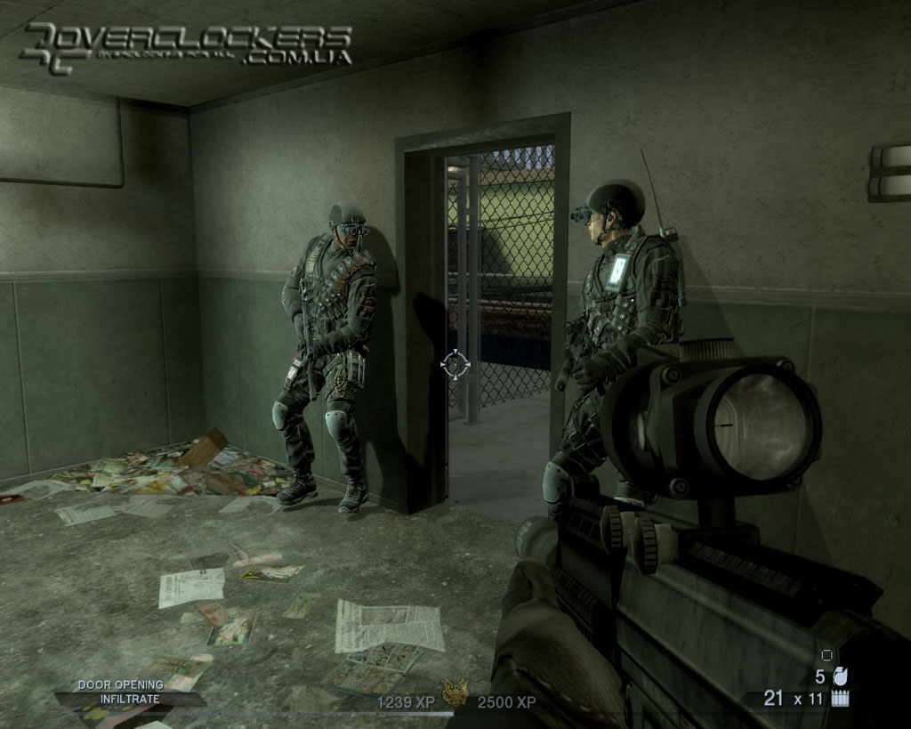 Что же касается оружия, то у нас разнообразный арсенал и в любой момент мы можем подхватить автомат убитого врага. Немаловажное нововведение коснулось возможности апгрейдить наше оружие и экипировку. За штурмы и убийства мы зарабатываем очки опыта, получаем очередное звания, что открывает доступ к новым улучшенным бронежилетам, бронированным наплечникам, более мощным оптическим прицелам или другим улучшениям. Даже экипировка сказывается на нашем поведении, обладая характеристиками защиты и маневренности. Естественно, что в более легкой броне мы двигаемся быстрее, но защита ее слабее. А в начале игры есть возможность выбрать лицо персонажа, немного настроить его и подобрать «костюмчик» под свой вкус. И самое приятное, что эти RPG-составляющие довольно органично вплетаются в игровой процесс. В погоне за очередной звездочкой и кучкой дополнительных очков глаз упорно ищет в прицеле голову террориста, а мозг придумывает небанальные способы убийства. Например, подождать, пока противник подбежит к бочке с горючим, и взорвать его.