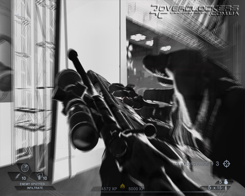 Дымовая завеса помогает нам подойти в большой группе противников или пробежать открытый участок. Пока мы под прикрытием, мы можем видеть противников благодаря тепловизору.
