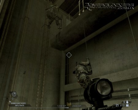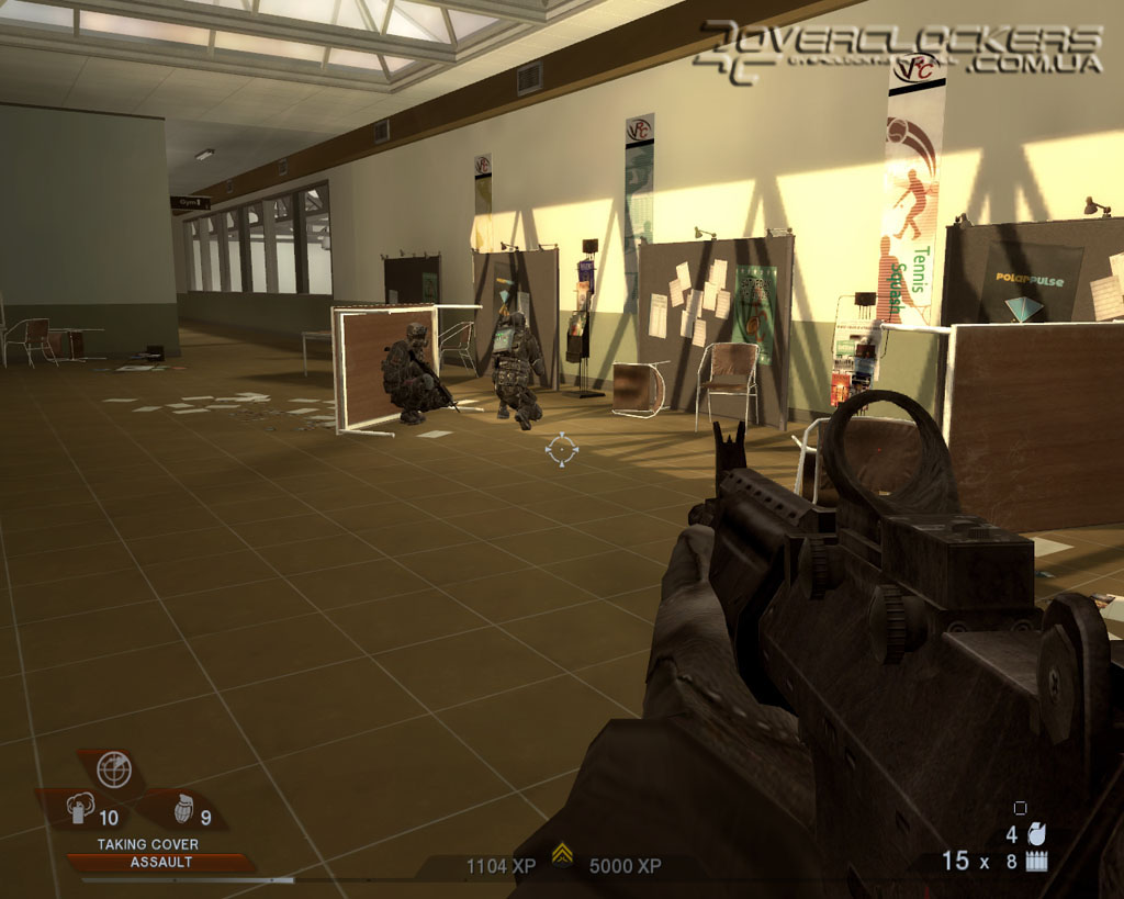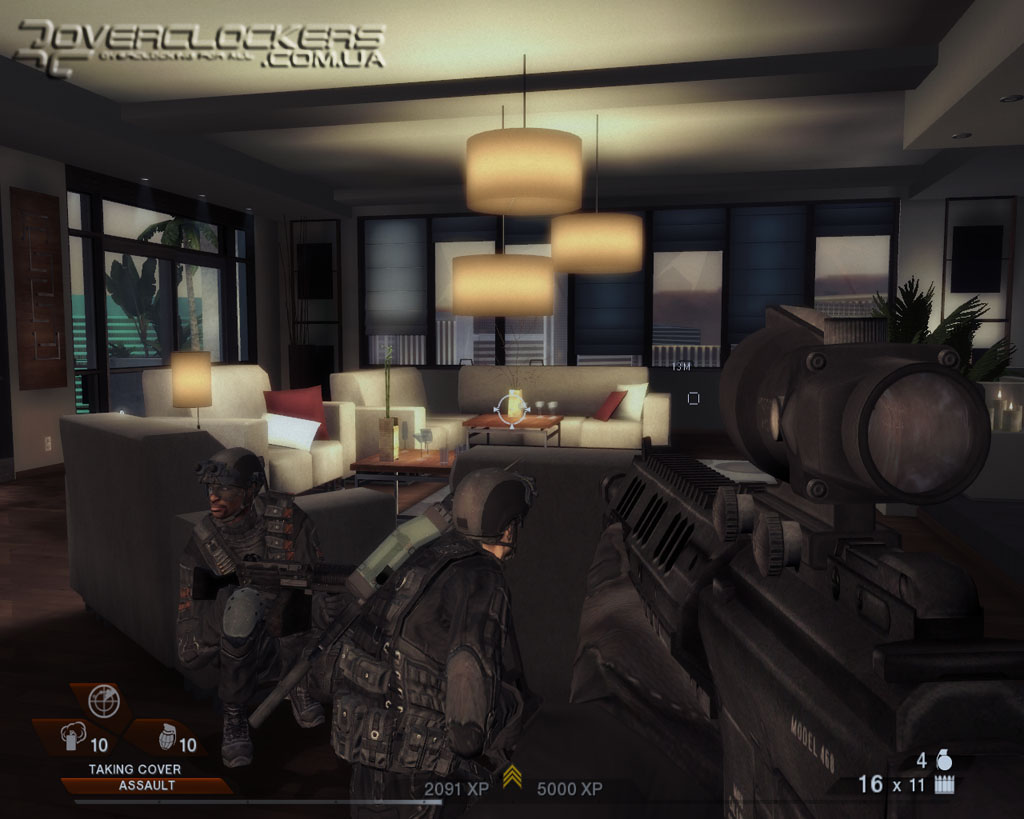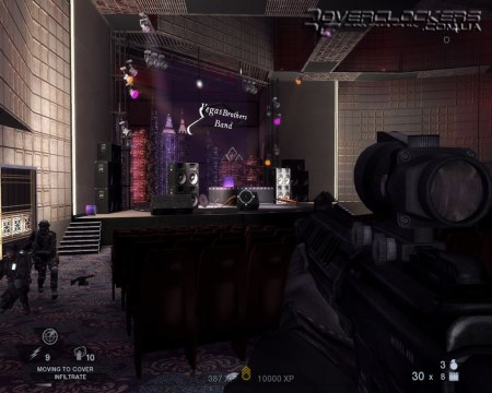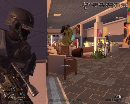 На словах выглядит отлично, на деле все обстоит сложнее. Уровни в Rainbow Six Vegas 2 стали просторнее, большие залы, балконы и много укрытий. Выбили парочку врагов, а нас сразу же встречает их подкрепление, укрывающееся где-то за дверью. А еще периодически врывающиеся через окна террористы, или спускающиеся на веревках, могут легко застать врасплох. Так что, постоянно приходится следить за флангами и использовать напарников как прикрытие или наоборот посылать их в пекло боя, и пока на них акцентируют внимание террористы, уничтожать их, как только они высунутся.